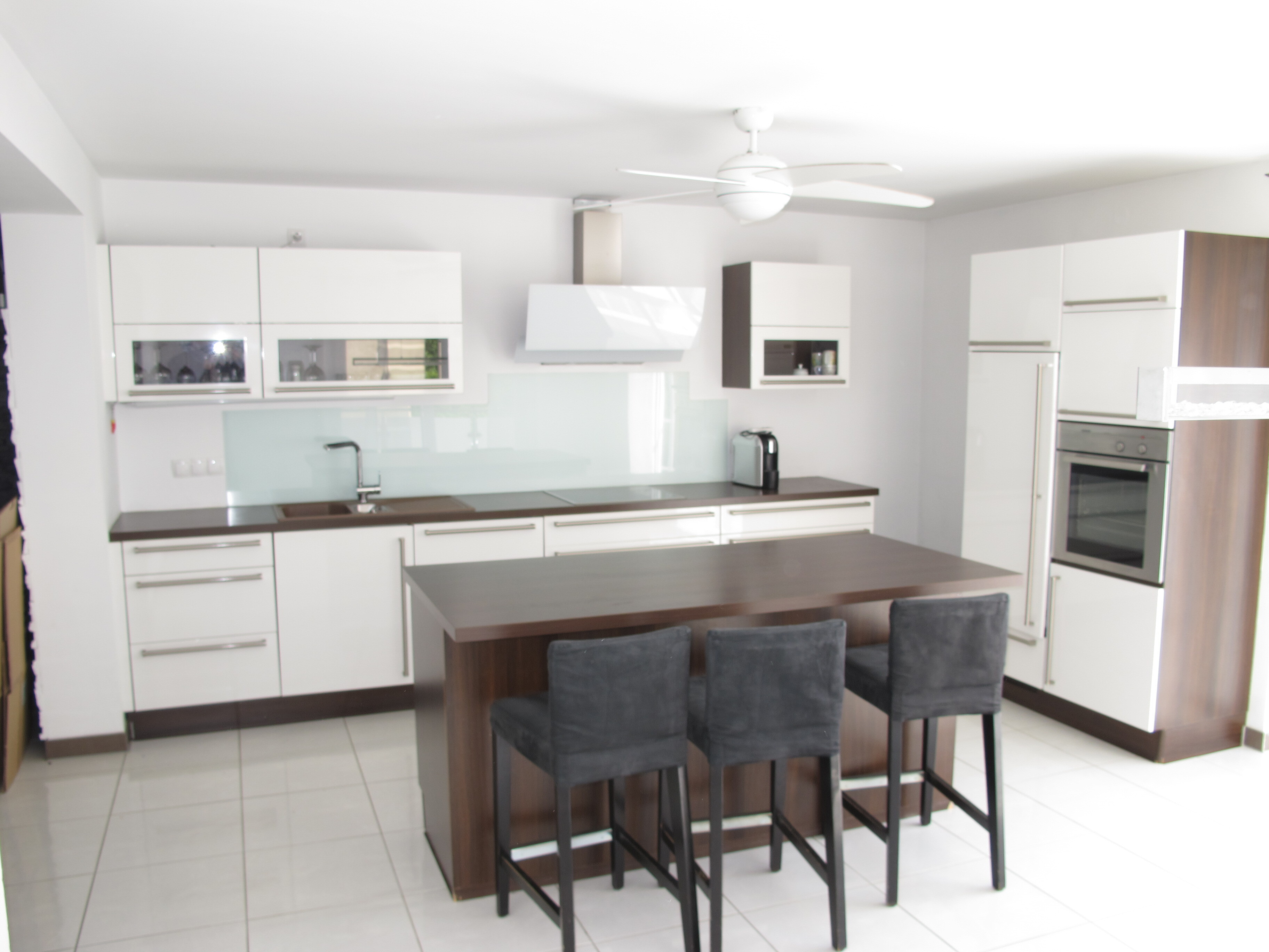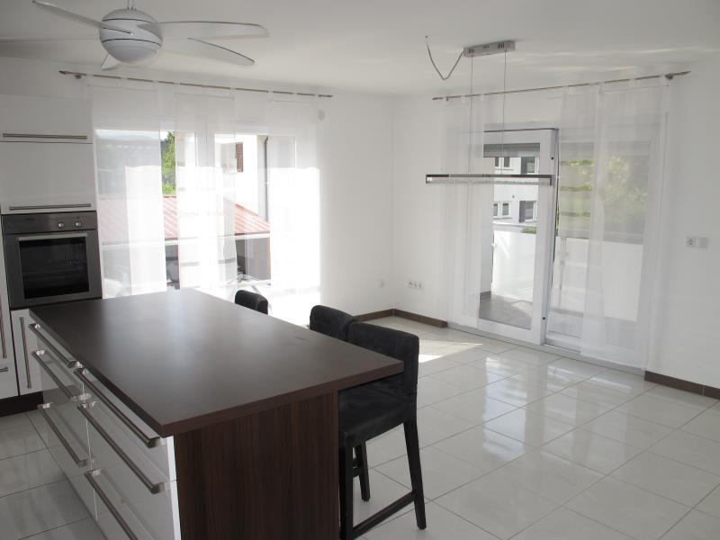 Die offene Wohnküche mit großer Schiebetüre auf den Balkon ist das Herz der Wohnung, wo sich die Familie trifft. Hier ist auch ein Pellet-Ofen zusätzlich zur Heizung vorhanden mit 8 KW für gemütliche Abende.