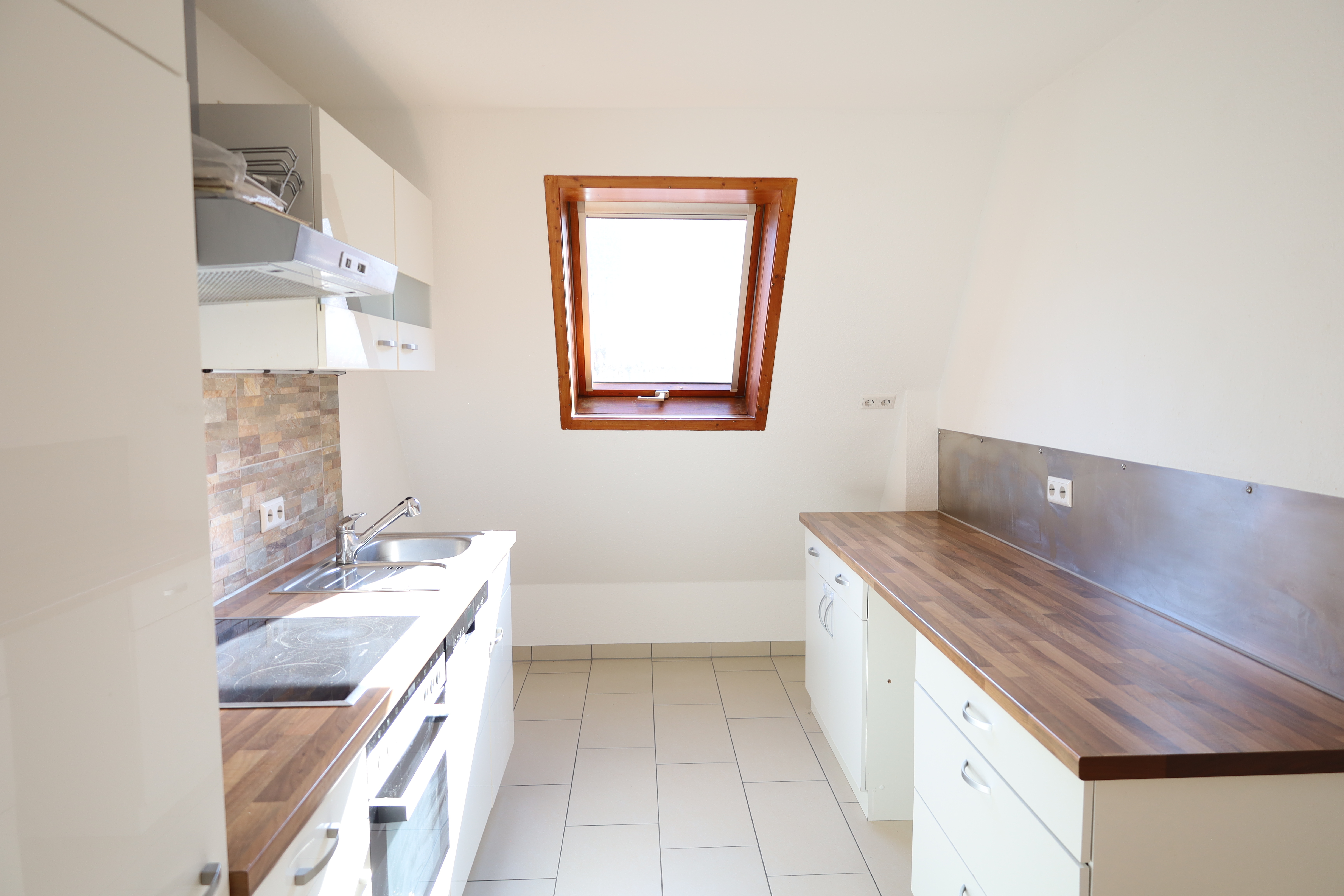 Beim Betreten der Wohnung empfängt Sie ein lichtdurchfluteter, offener Wohnbereich, der das Herzstück der Wohnung bildet. Die große Fensterfront sorgt für eine angenehme, helle Atmosphäre und schafft ein behagliches Wohngefühl. Auf der linken Seite befindet sich das moderne Duschbad mit hellen Fliesen, einem praktischen Badschrank sowie Glasbausteinen, die für angenehmes Tageslicht sorgen. Direkt daneben liegt die Küche mit modernen Einbaumöbel und ausreichend Stauraum ausgestattet ist. Auf dieser Ebene stehen Ihnen zudem zwei weitere Räume zur Verfügung, die sich hervorragend als Schlafzimmer, Kinderzimmer oder Büro eignen.