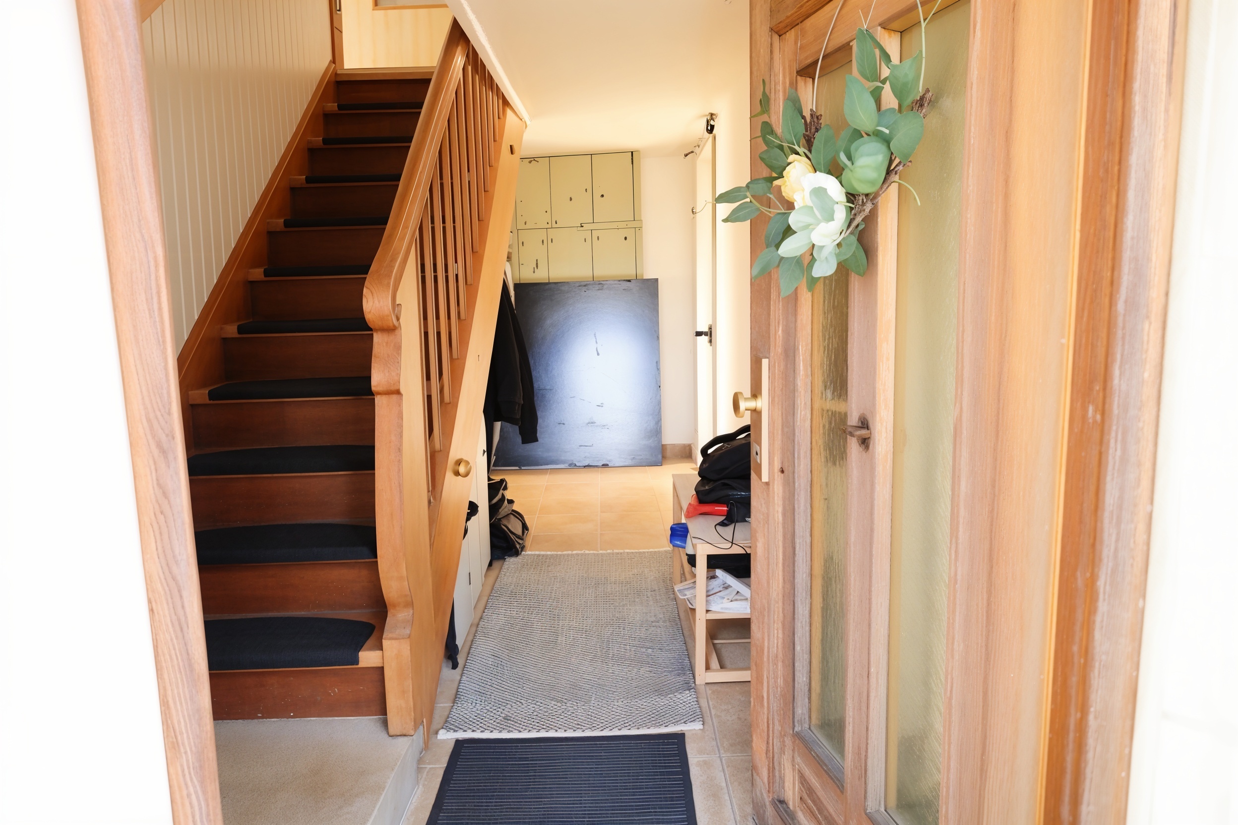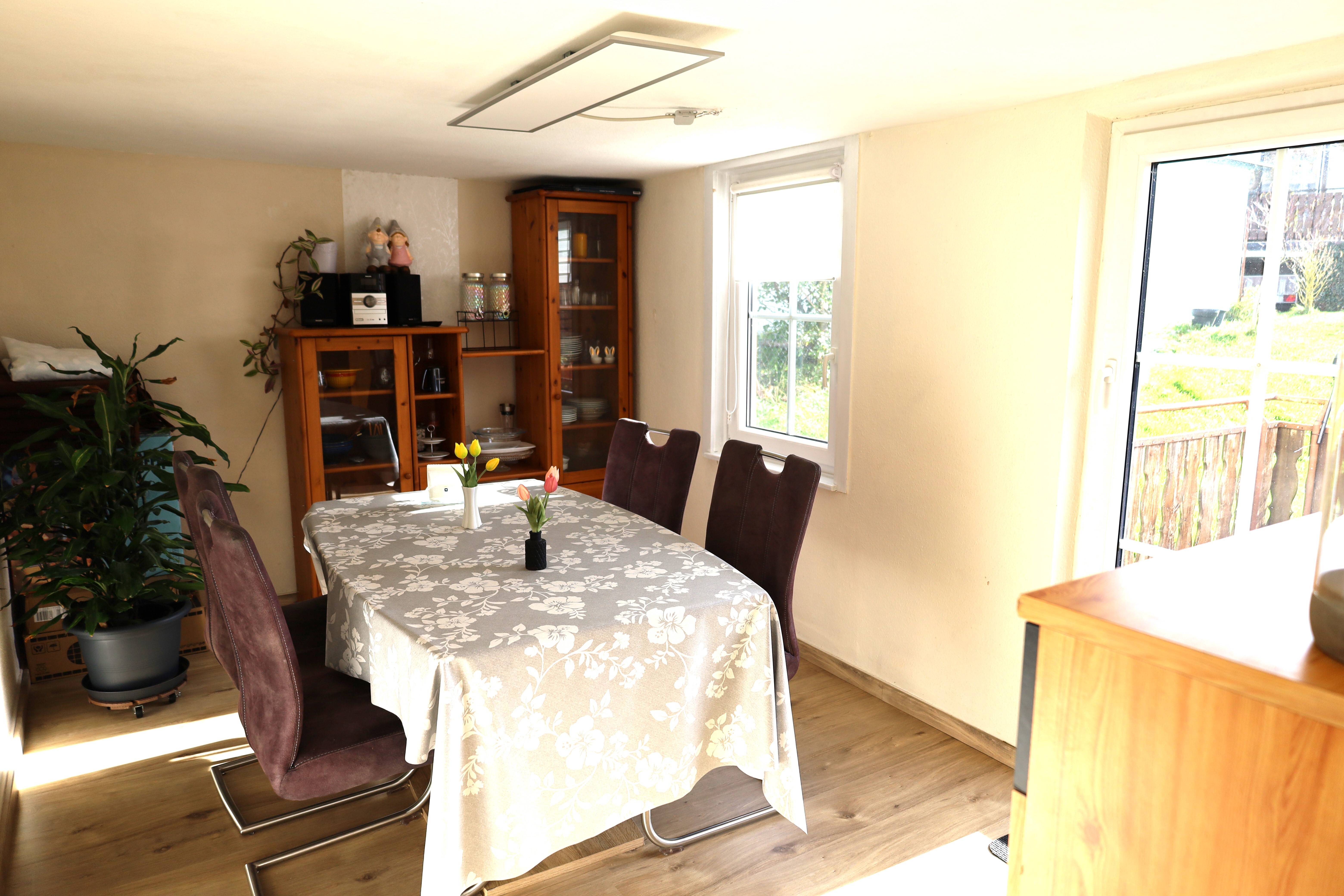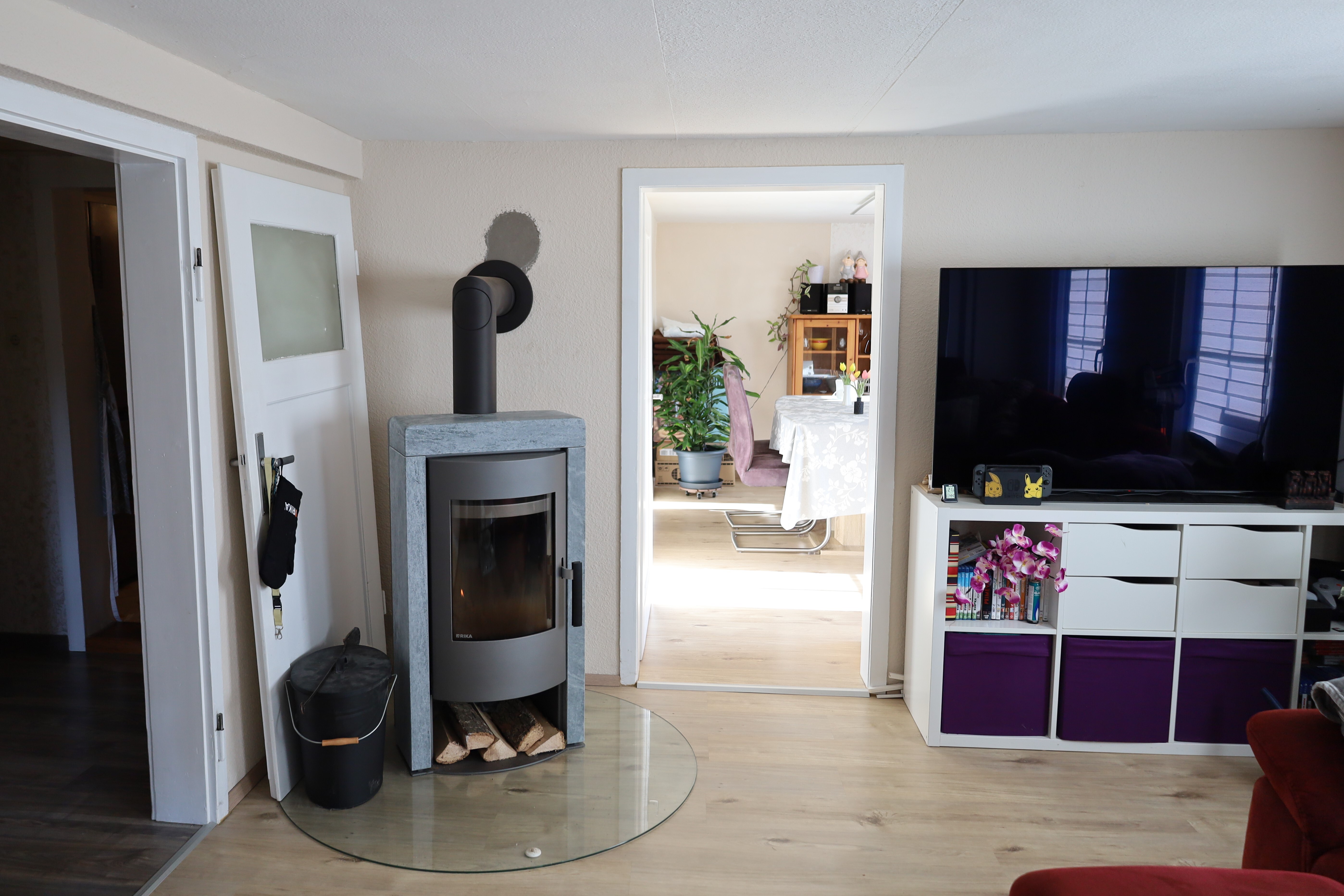 Im Erdgeschoss erwartet Sie eine geräumige Küche, ein Tageslichtbad mit Wanne sowie ein separates WC. Das Wohnzimmer mit Holzofen und das Esszimmer haben Zugang zur Terrasse und dem Garten, ideal für Familienzeit oder gesellige Abende mit Freunden.