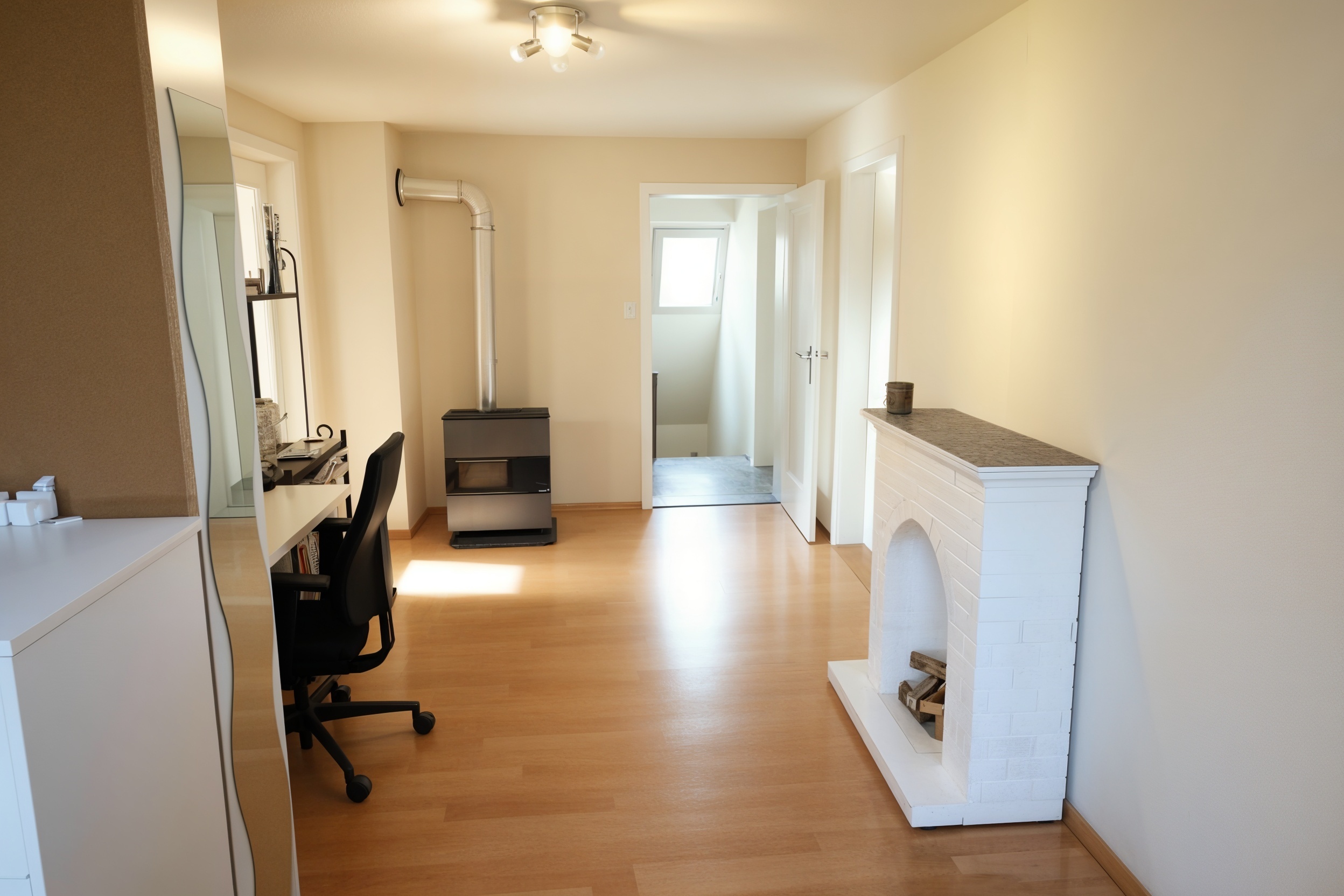 Das Dachgeschoss bietet ausreichend Platz für ein Atelier, ein Büro, eine kleine Ankleide, ein zweites WC, ein gemütliches Schlafzimmer und einen vielseitig nutzbaren Hobbyraum. Der Dachboden bietet zusätzlichen, unausgebauten Stauraum.