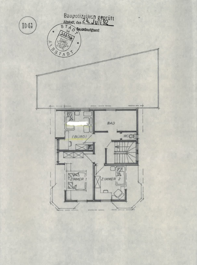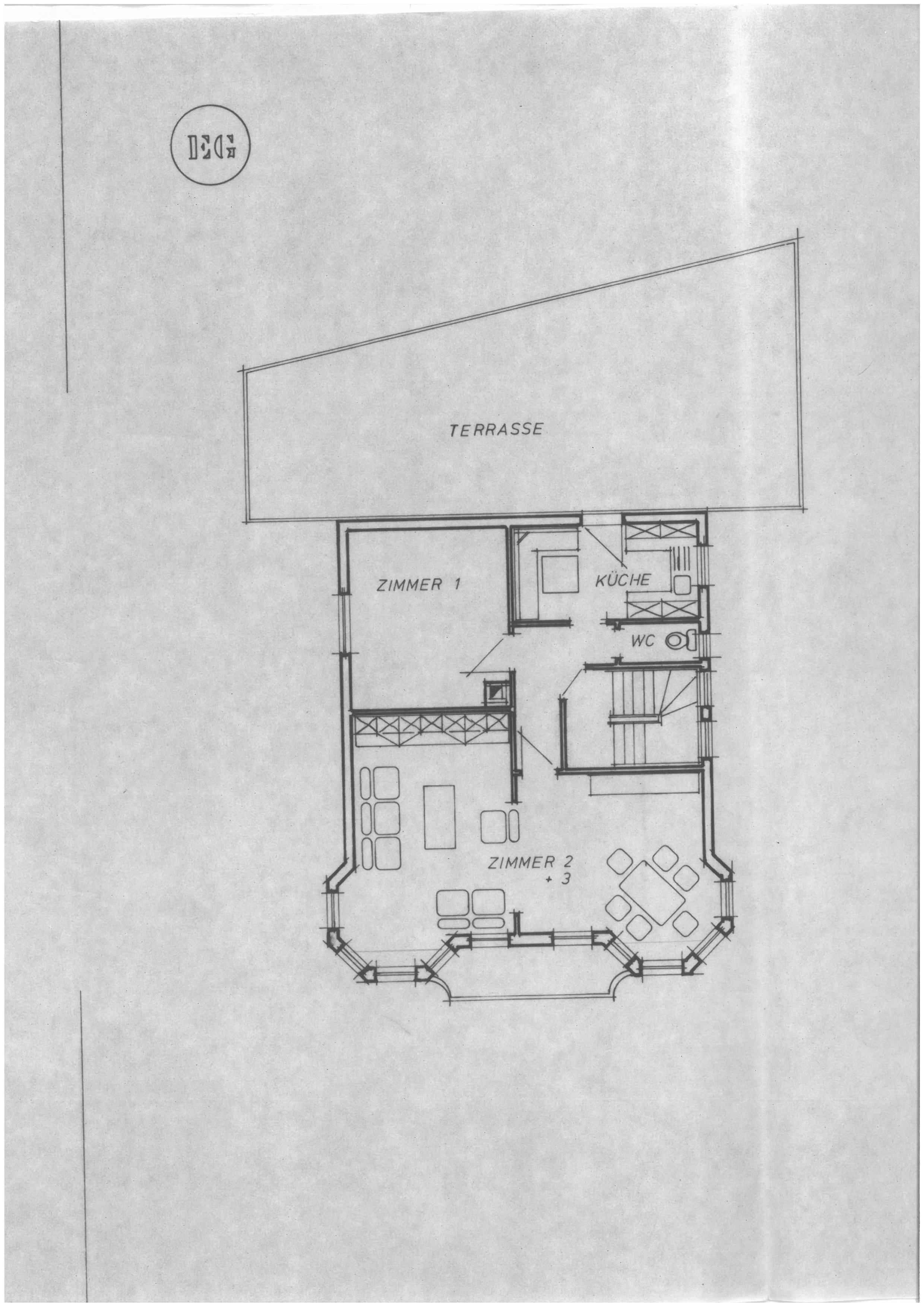 Unter dem schönen Mansardendach sind 3 Zimmer und ein modernes Duschbadezimmer sowie ein WC separat.