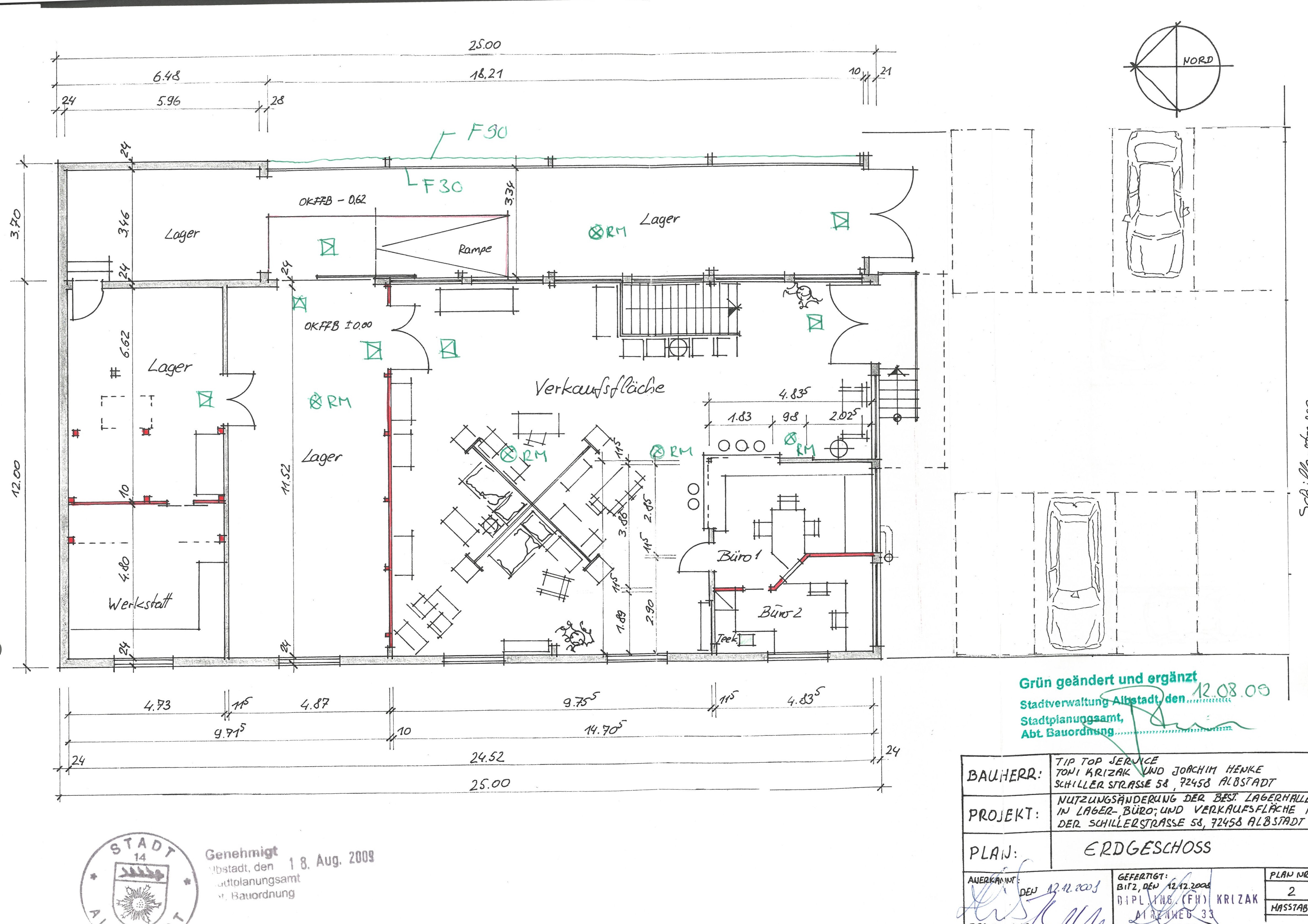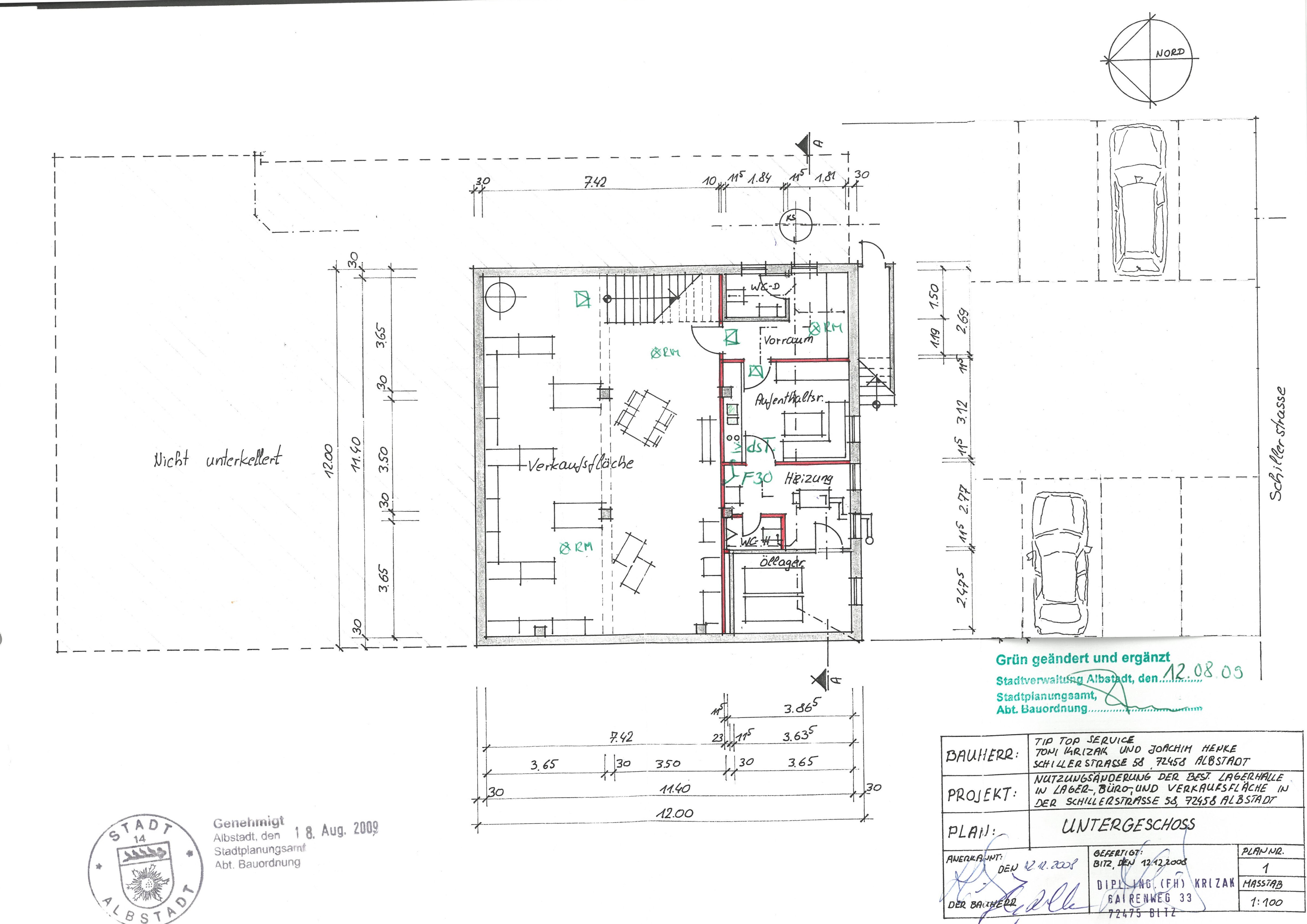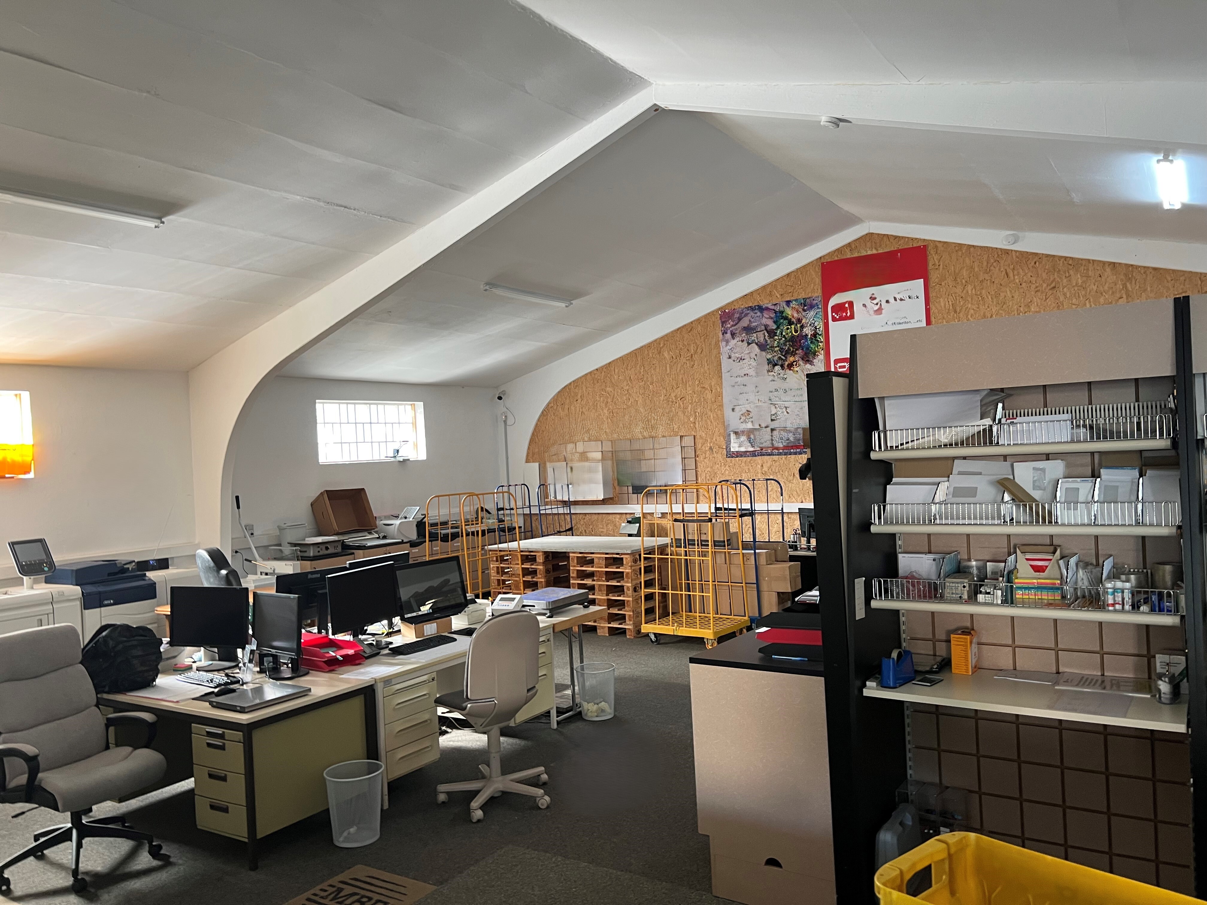 Im Erdgeschoss findet die Kerntätigkeit statt, dort befindet sich ein großer Gewerberaum mit Büro, Verkaufsfläche und Lagerraum. Diese Fläche hat eine Größe von ca. 170m².