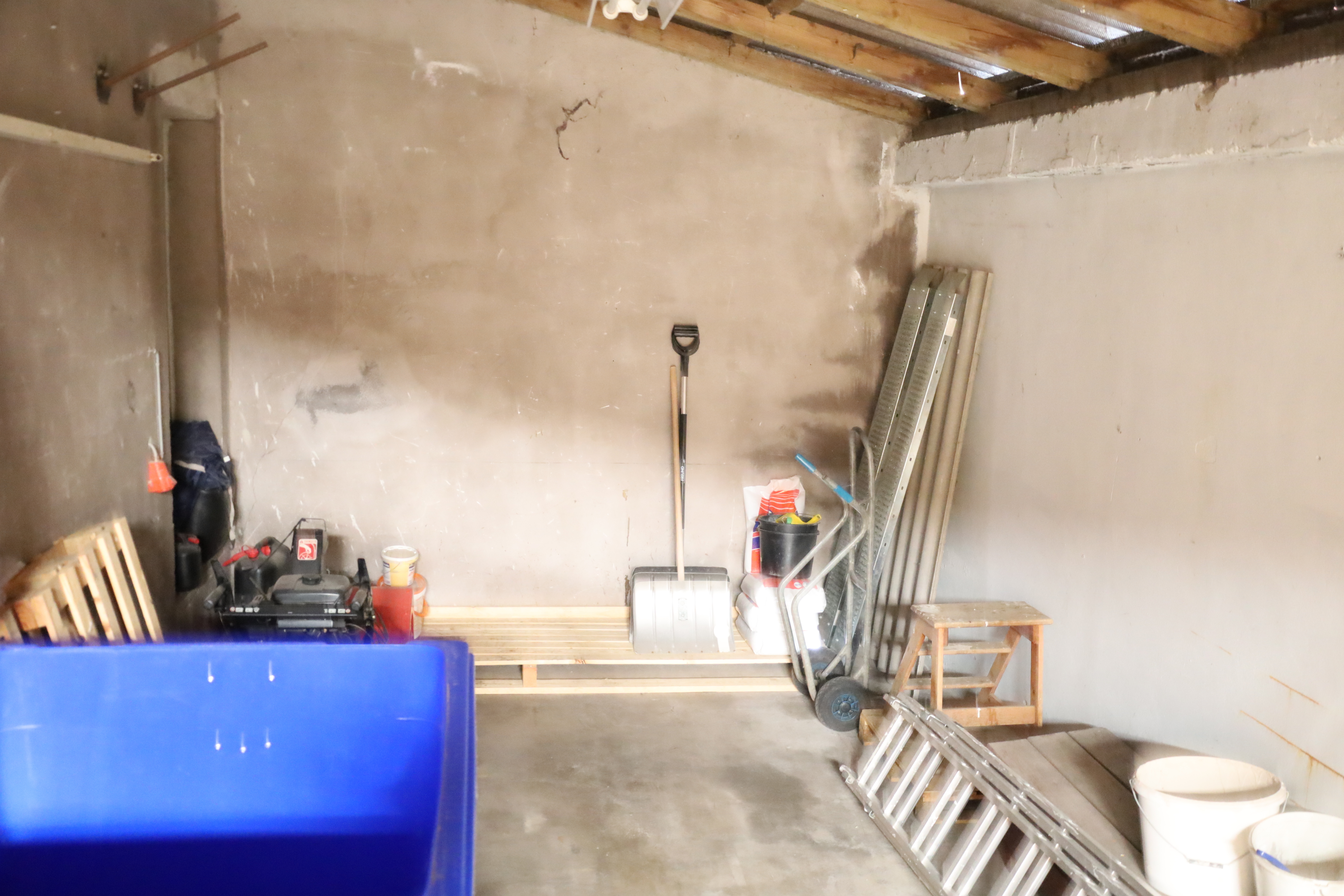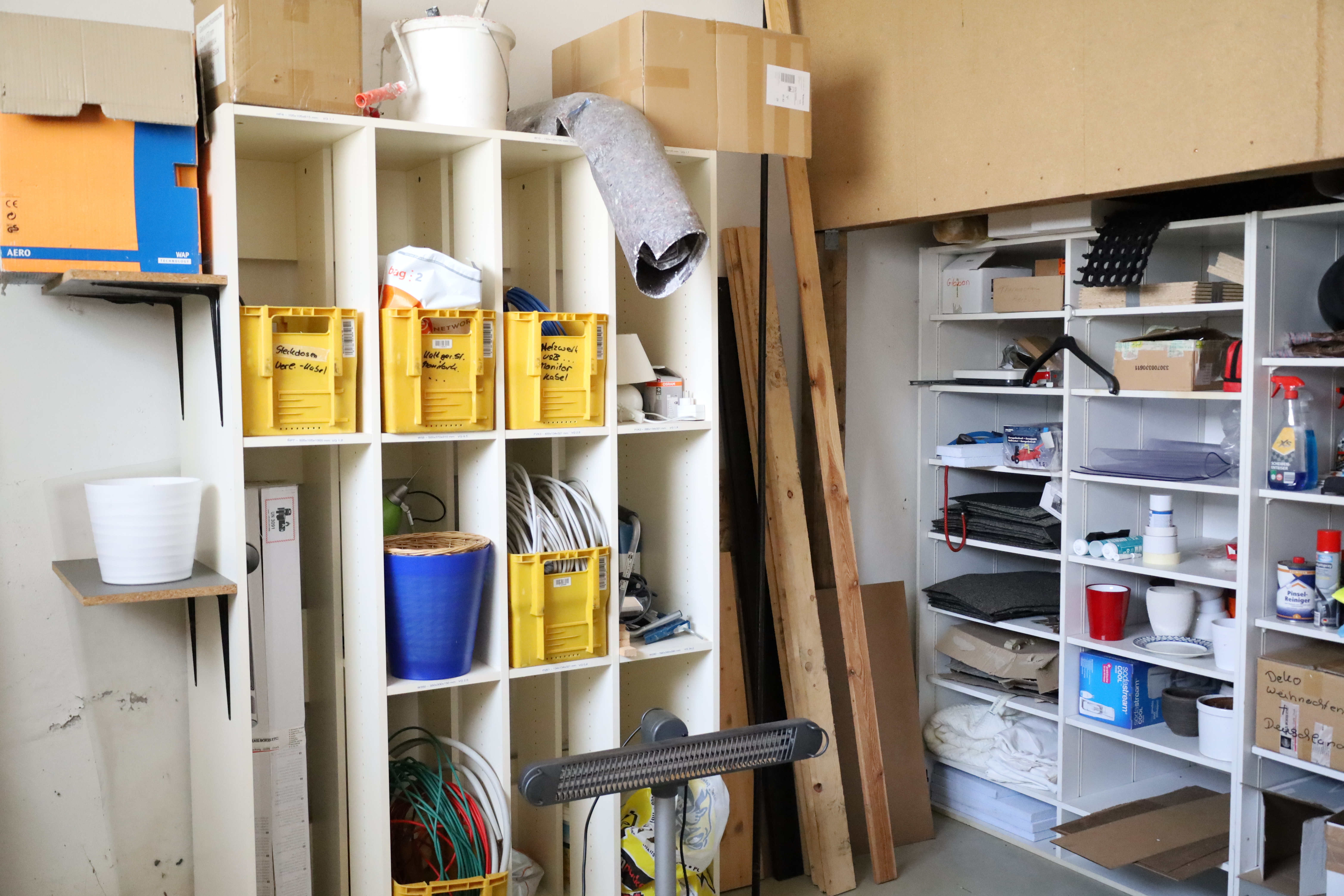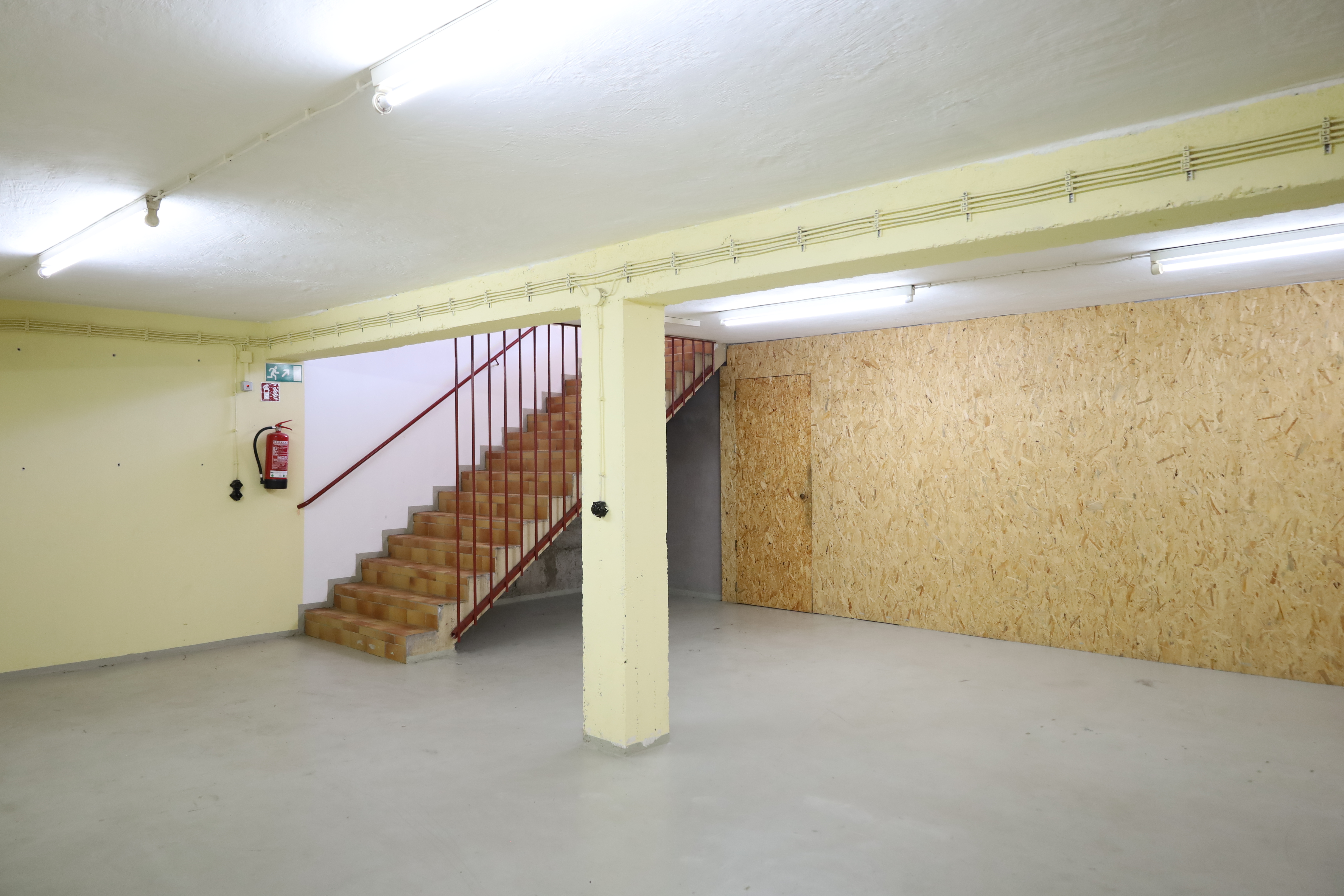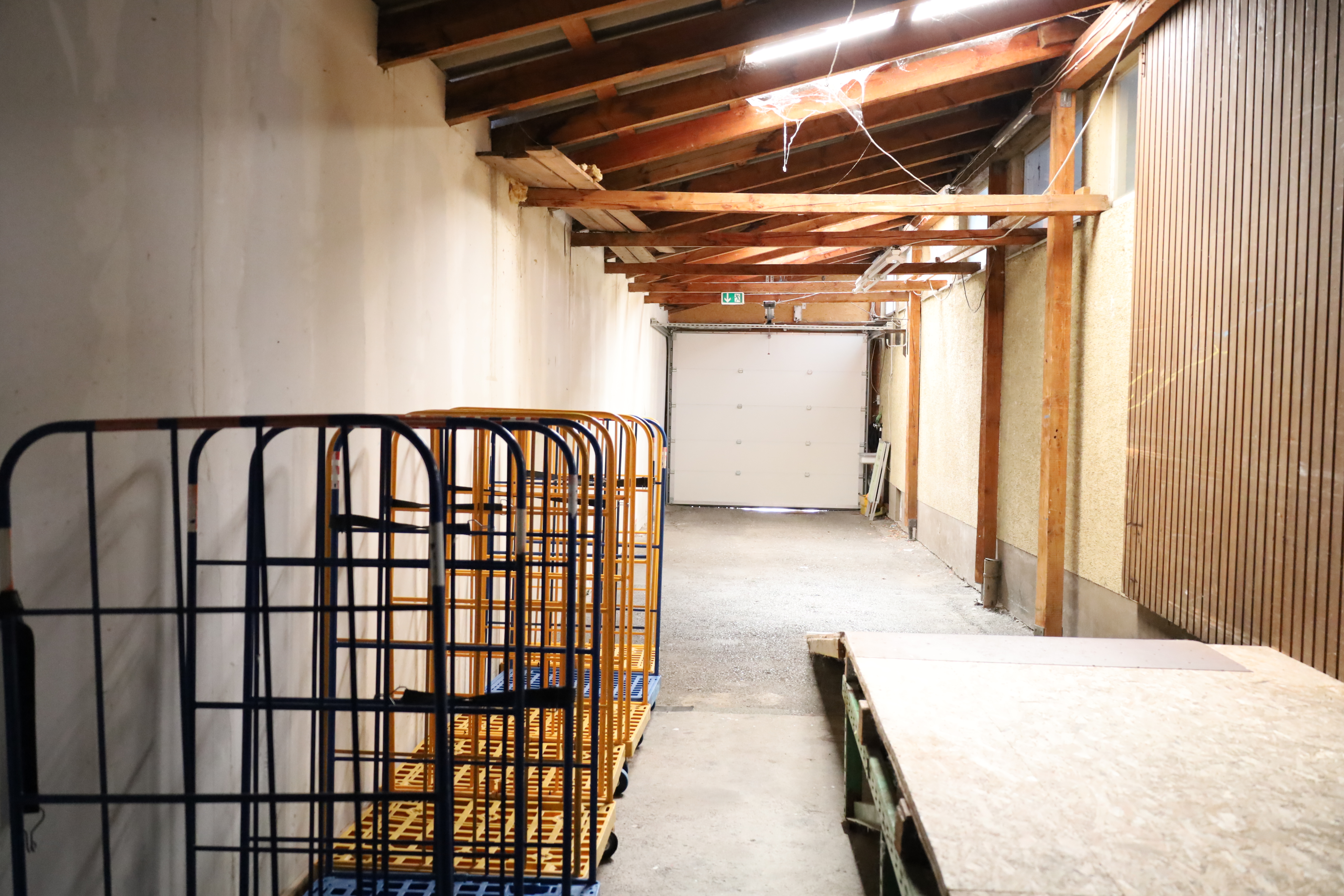 Auf der rechten Gebäudeseite befindet sich eine befahrbare Garage mit einer Länge von ca. 24,5 m welche zur Anlieferung mit Laderampe und der Hauptfläche verbunden ist, es sind ca. 79 m² Fläche.
