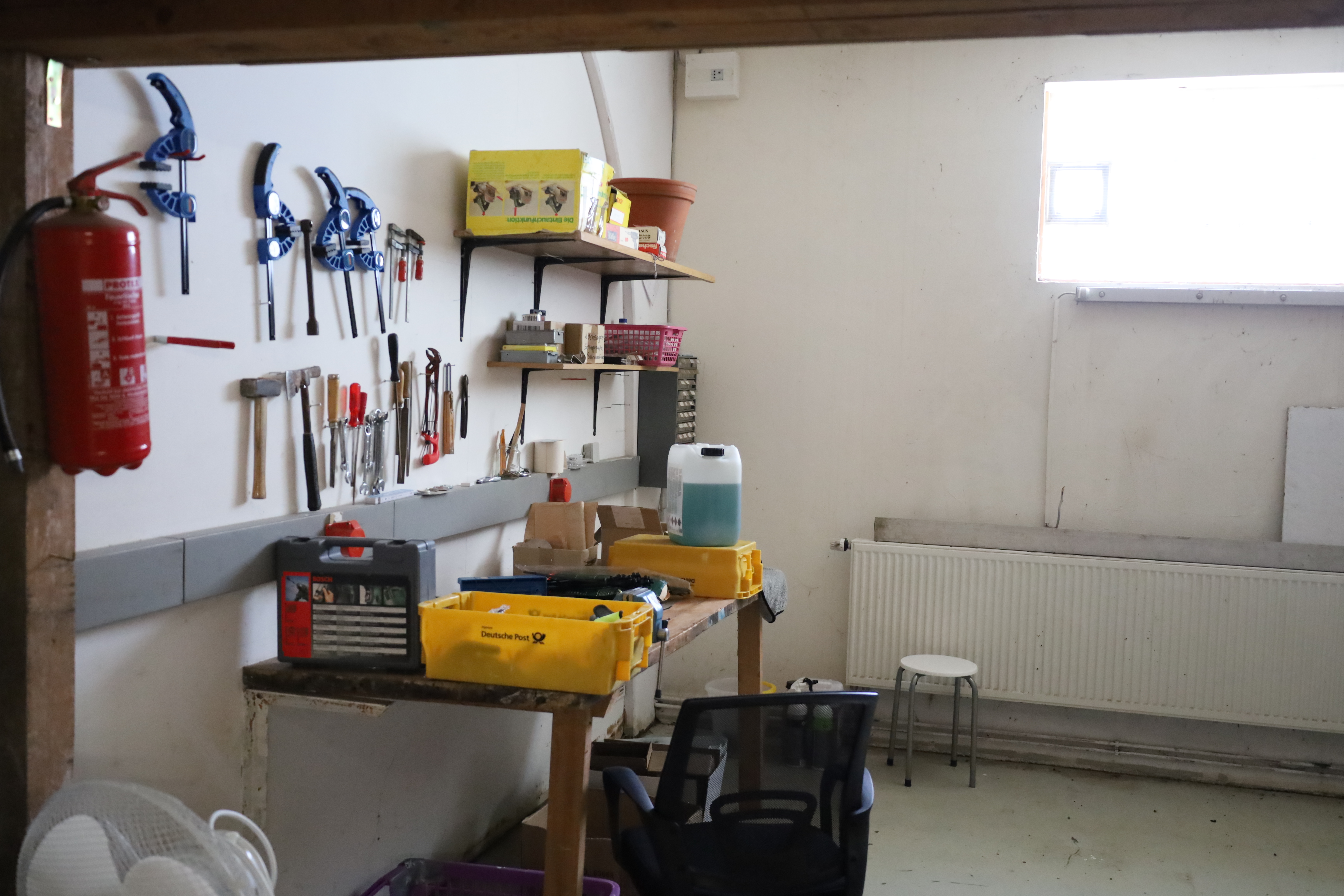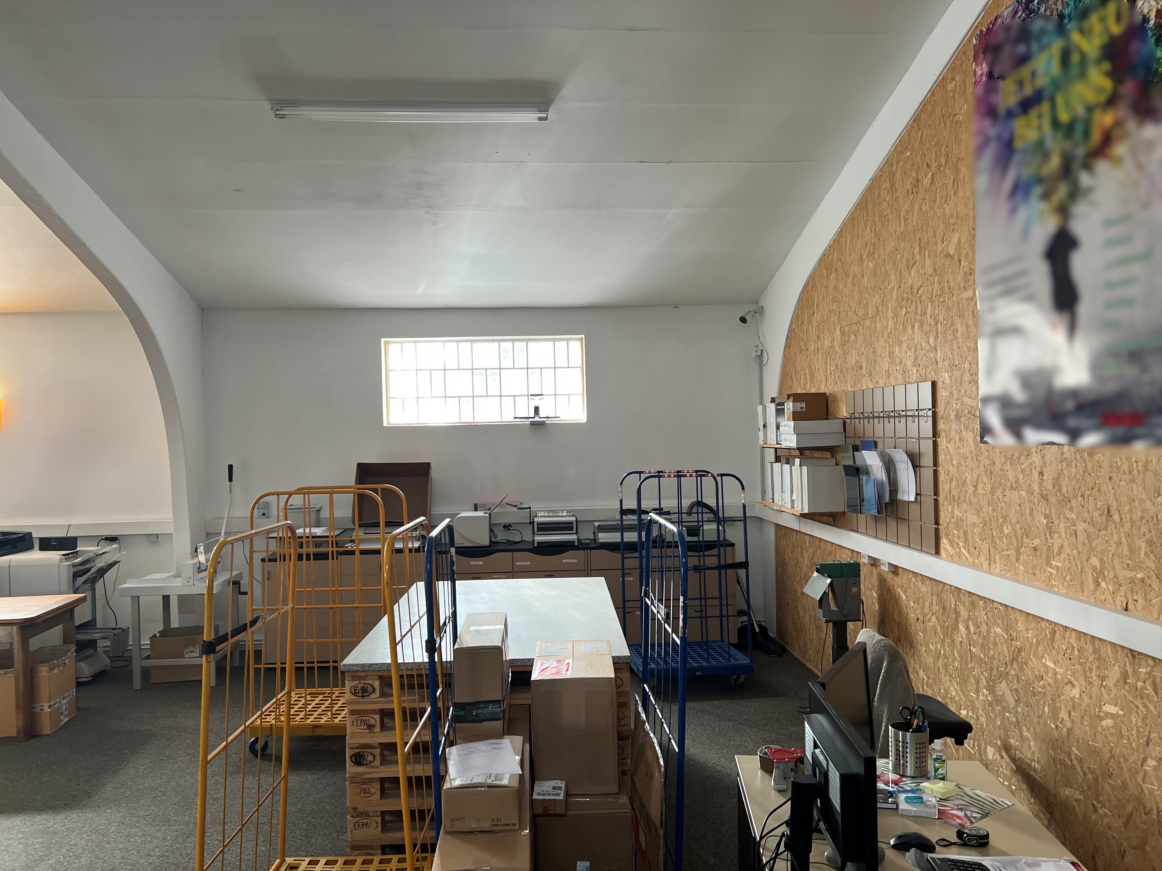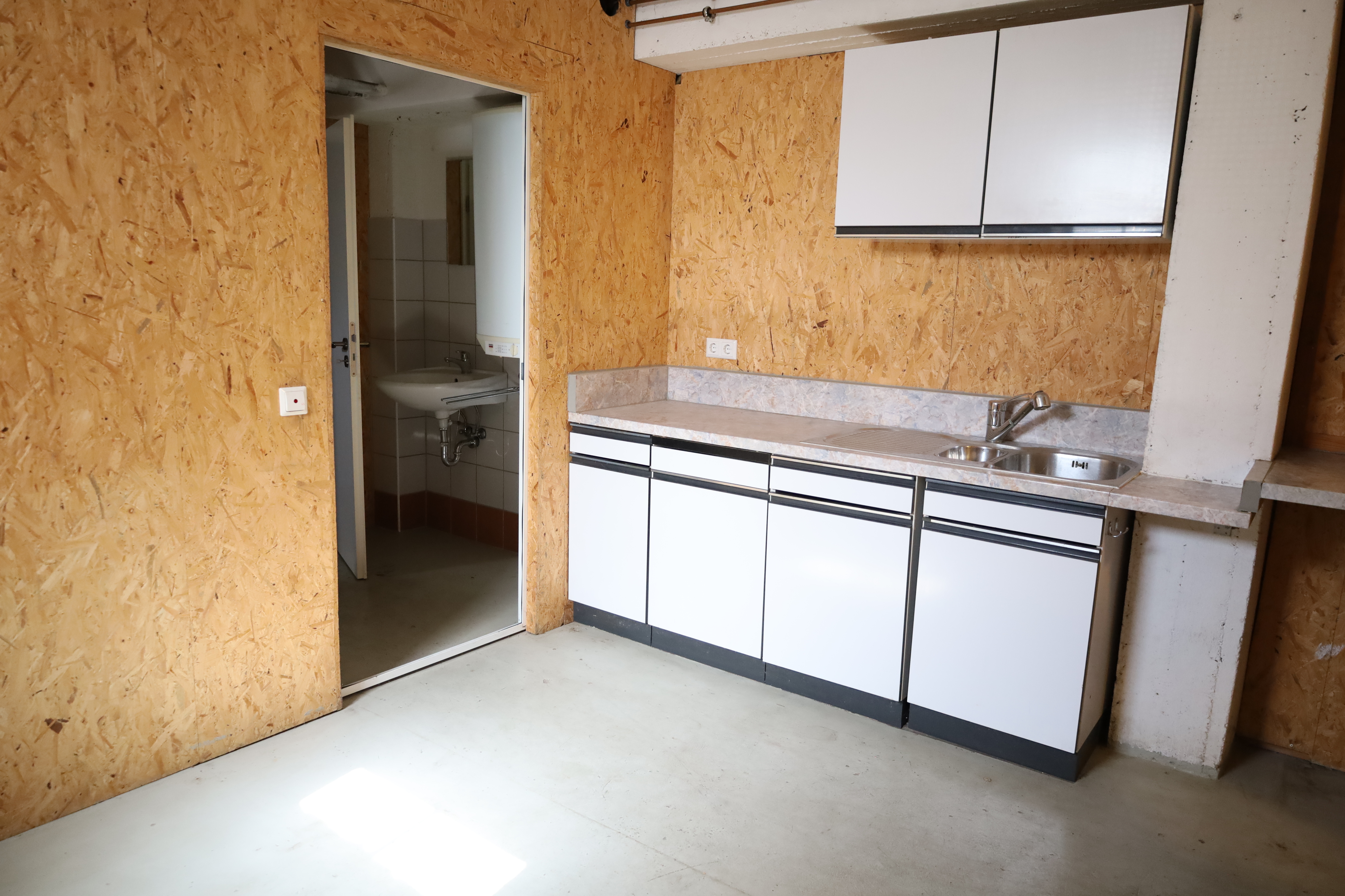 Im UG befindet sich ein weiterer großer Lager oder Produktionsraum mit einer Fläche von insgesamt ca. 130 m² mit kleiner Küchenzeile, separaten WC und der Öl-Zentralheizung.