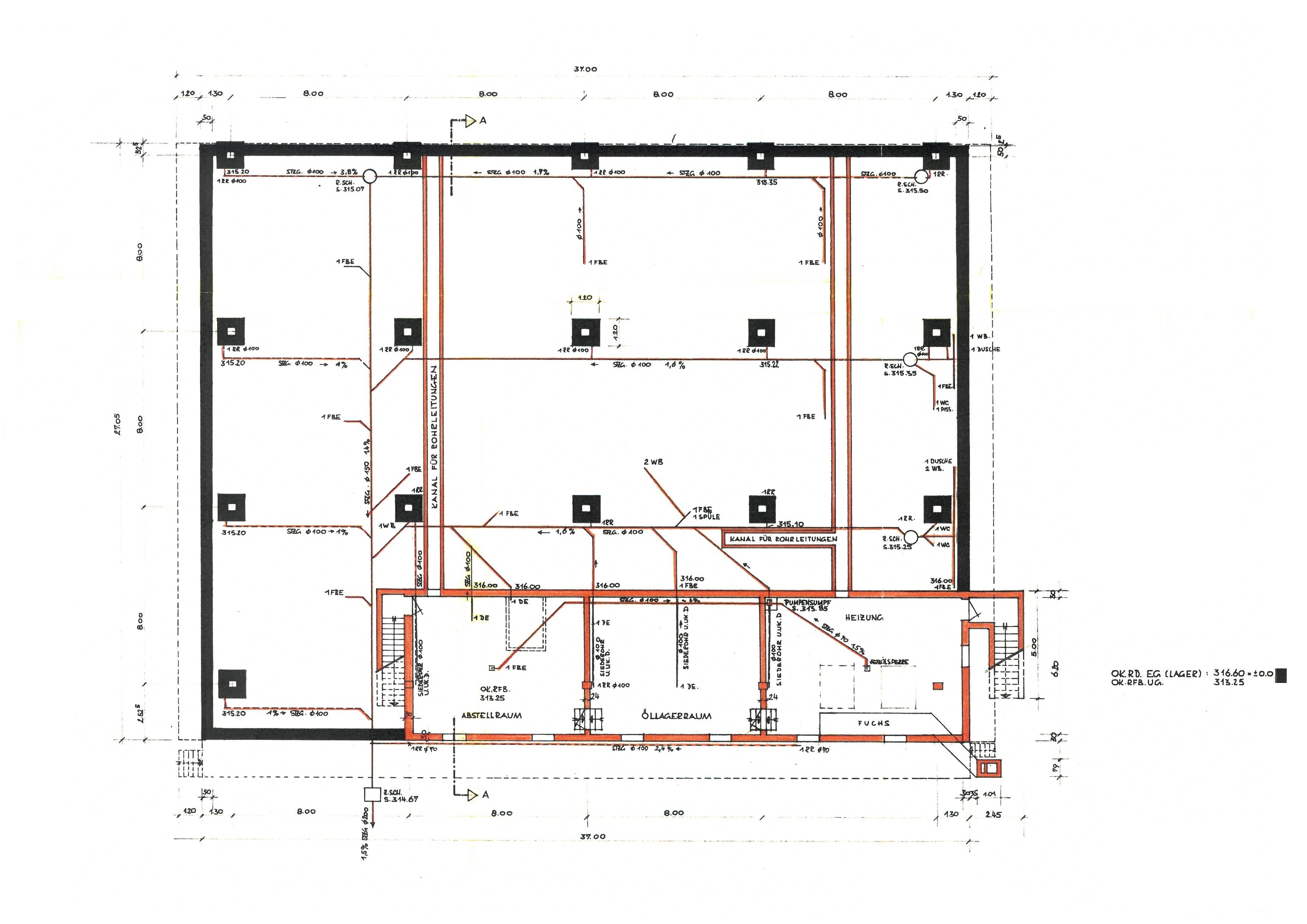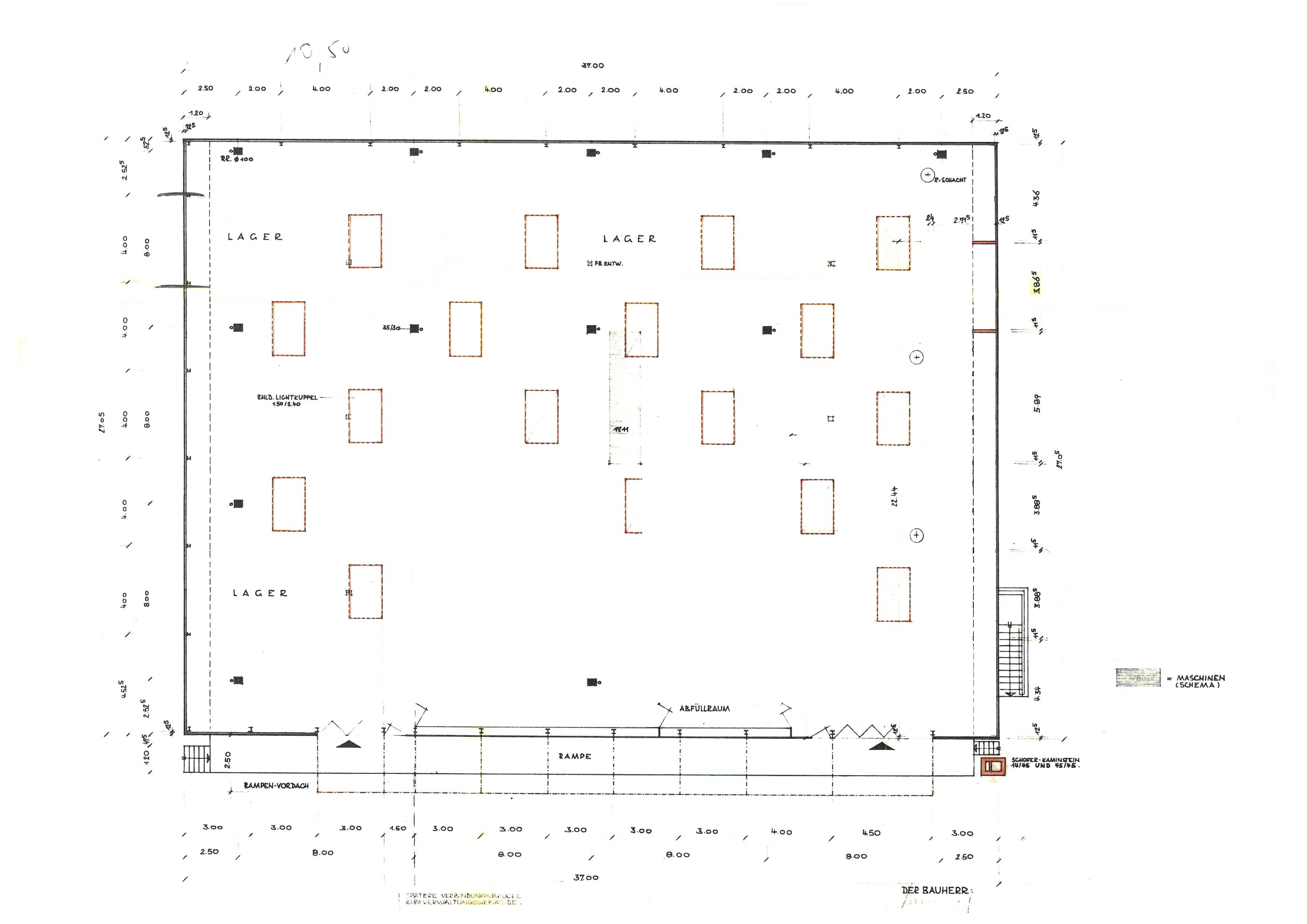 Die Halle hat eine Teilunterkellerung mit einer Fläche von ca. 186 m².