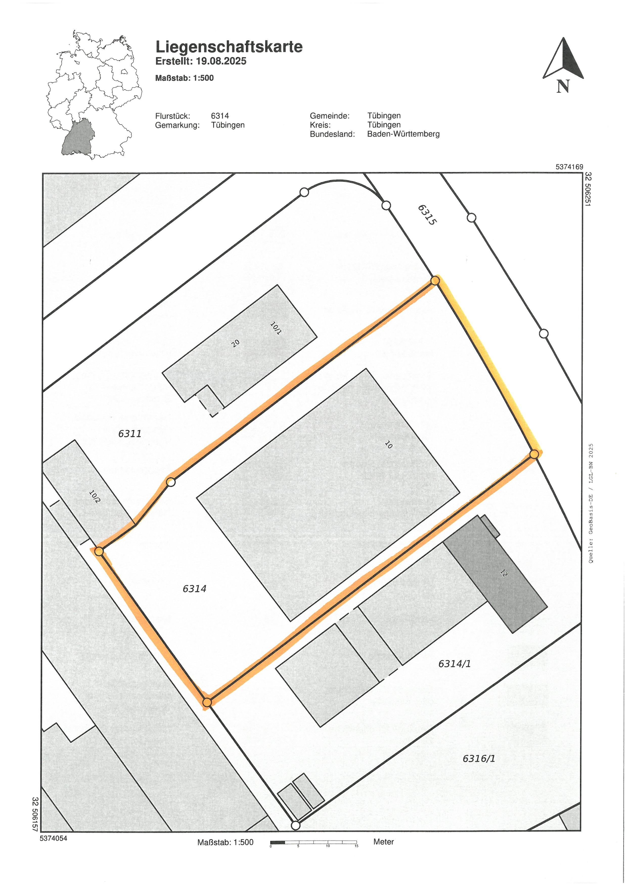 Spannende Lage im Osten von Tübingen: In der Nähe des Landratsamtes und des Neckars wurde 1963 diese massive und große Halle erstellt. Das Gebiet trägt den Namen „Schaffhauser Straße“ und ist ein reines Industriegebiet.