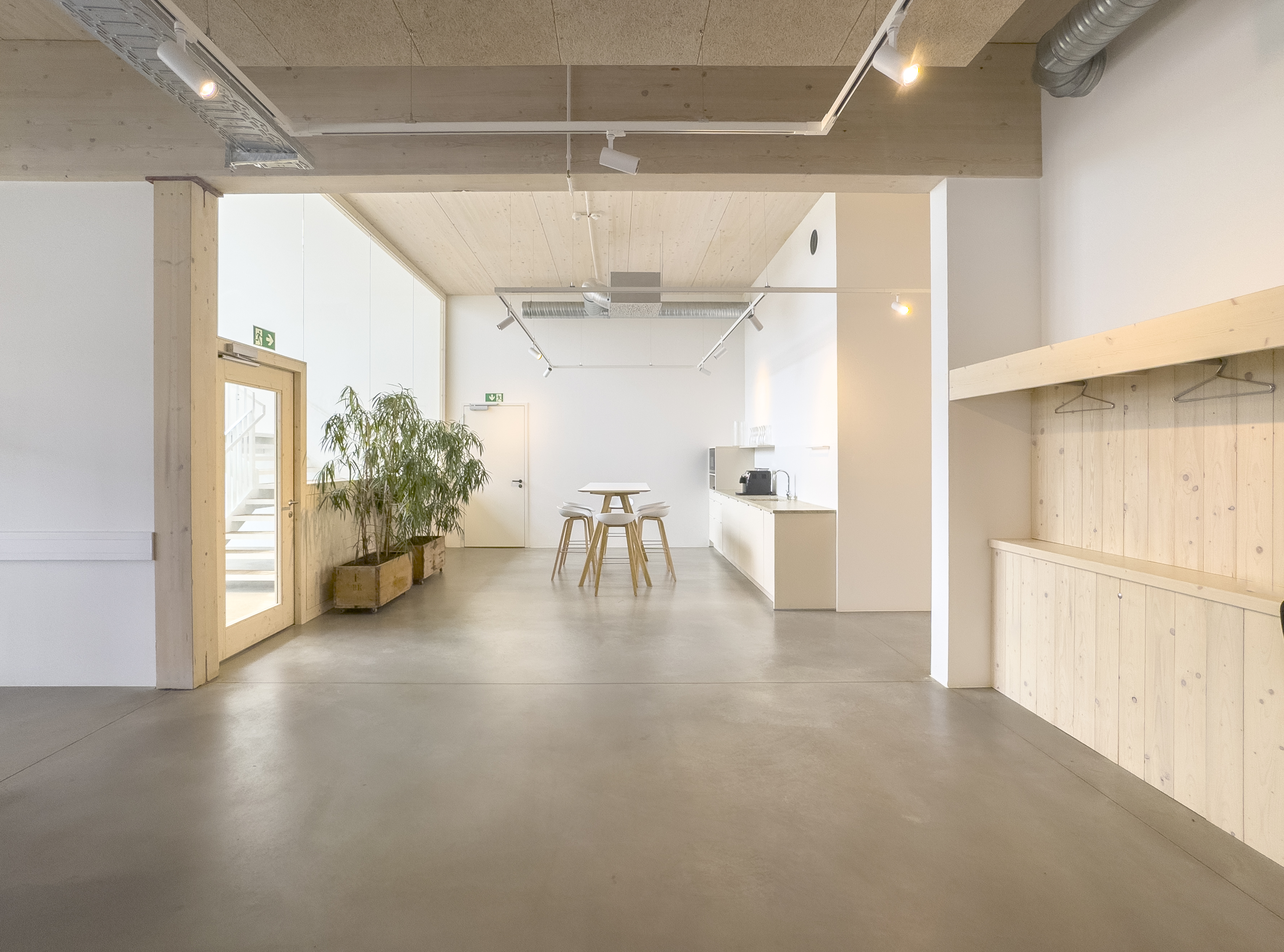 Es wurde unter konsequenter Berücksichtigung nachhaltiger Kriterien geplant und ausgeführt. Der Fokus liegt auf Energieeffizienz, ressourcenschonender Bauweise und langfristiger Wirtschaftlichkeit. Recycelte Holzflächen mit Industriecharme, Holzeinbauten und offen geführte Installationen prägen den reduzierten gestalterischen Ausdruck und bieten einfache Möglichkeit zum Nachrüsten von Leitungen. Die verwendeten Materialien sind schadstoffarm, langlebig und größtenteils demontierbar sowie recyclingfähig.