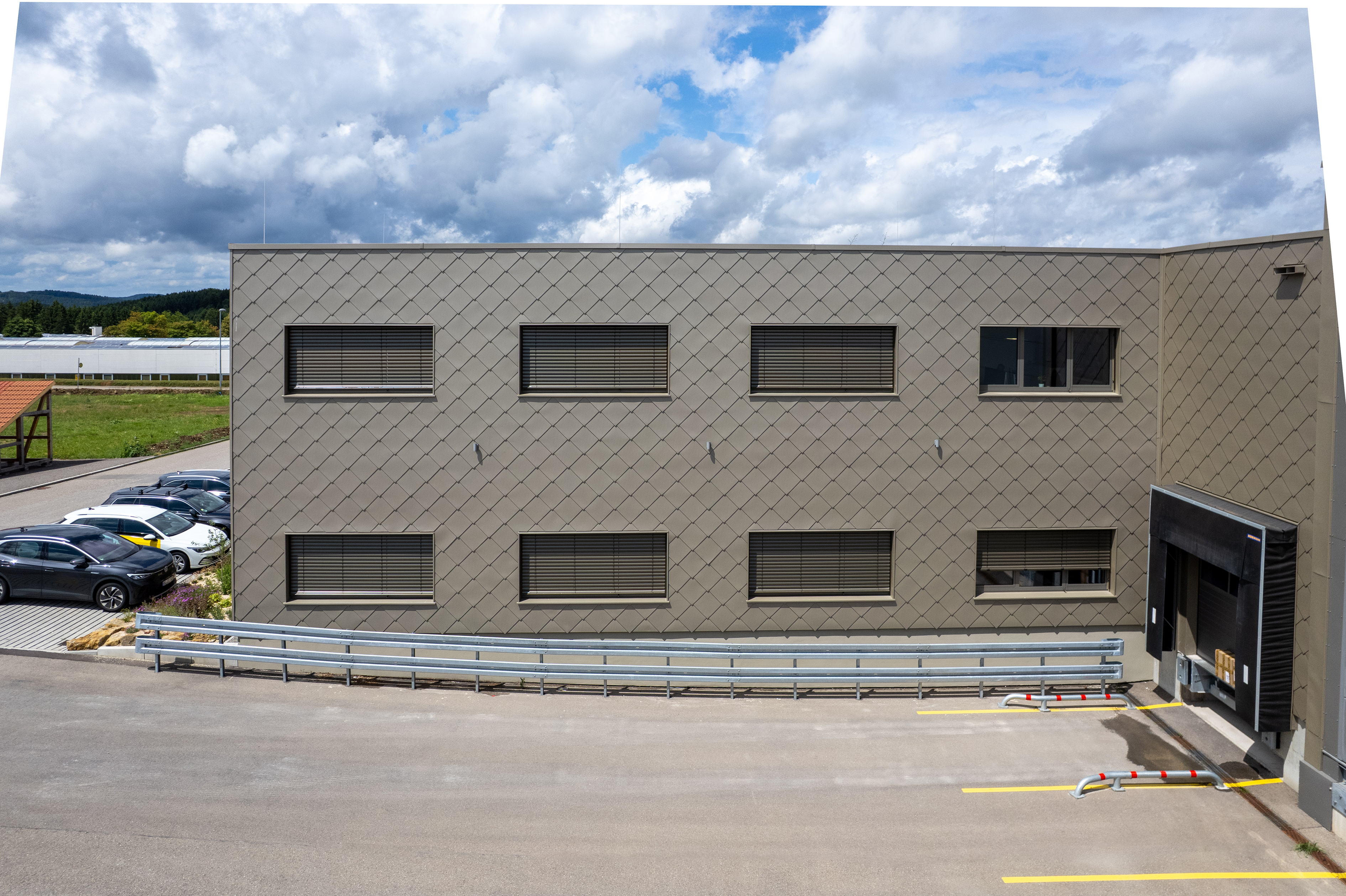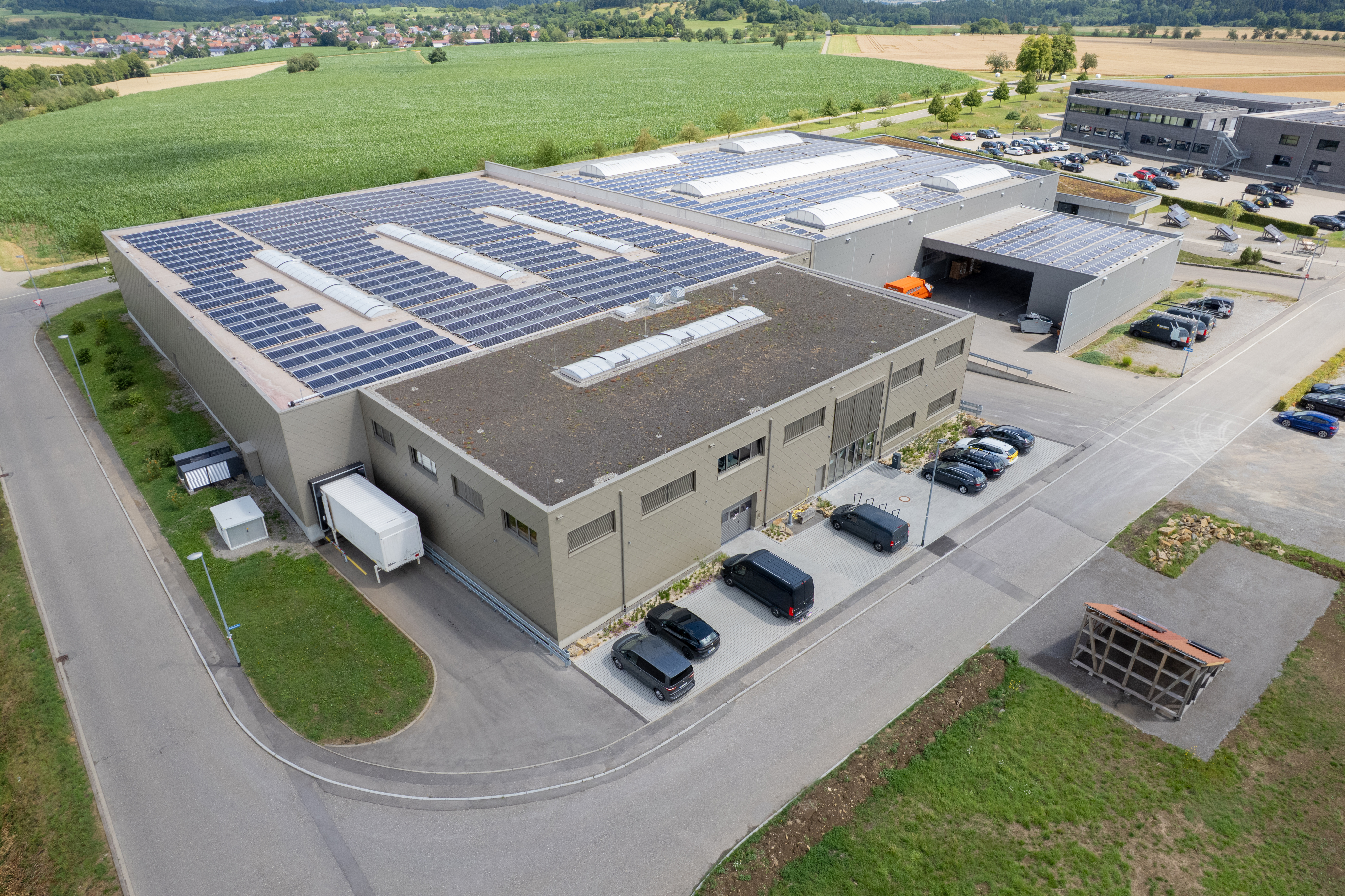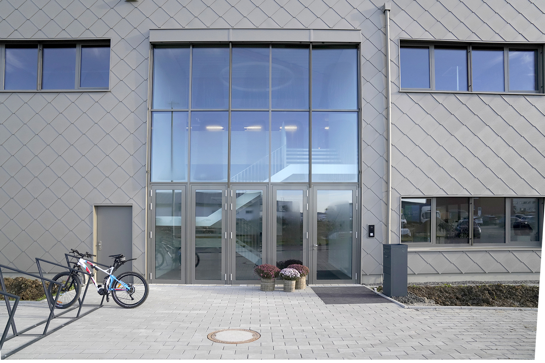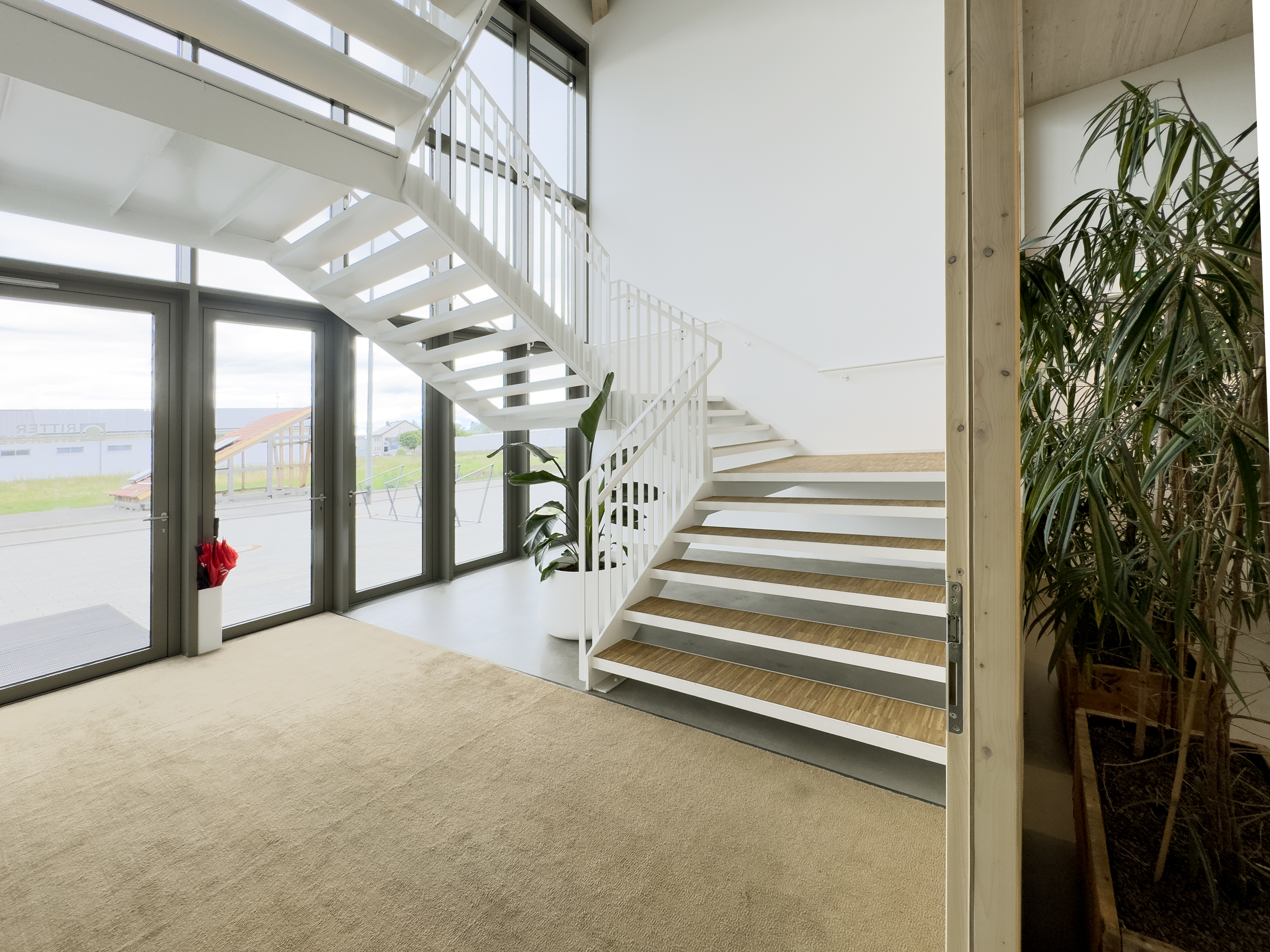 EnergiekonzeptDas Energiekonzept ist auf niedrigen Verbrauch und CO₂-Reduktion ausgelegt. Eine Photovoltaikanlage auf dem Dach der Lagerhalle nebenan deckt einen Teil des Eigenstrombedarfs. Die Beheizung erfolgt über eine Wärmepumpe. In Kombination mit einer Bauteilaktivierung (Betonkernaktivierung im EG und der Fußbodenheizung im OG) wird eine gleichmäßige Temperaturverteilung erreicht.