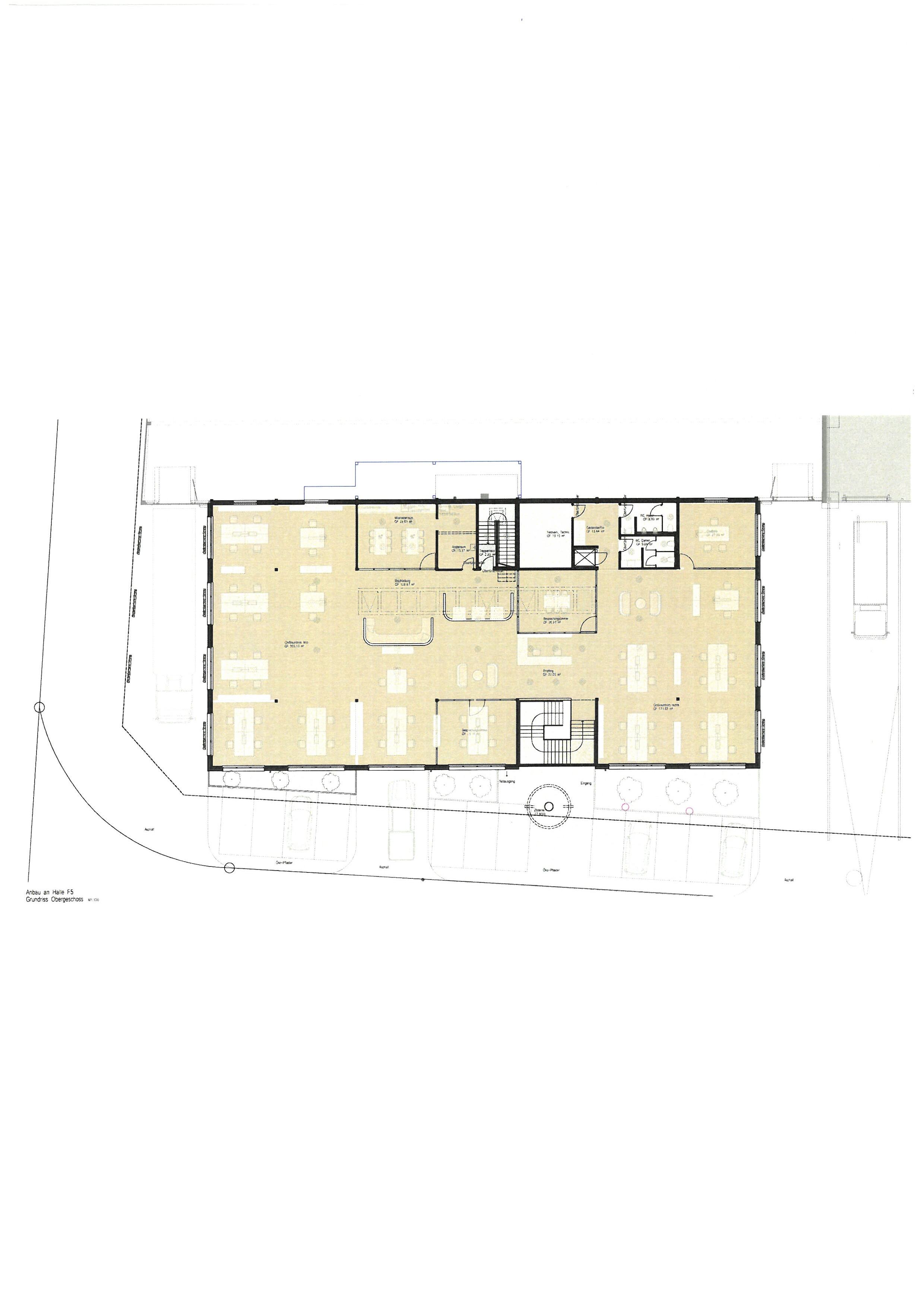 Die Grundrisse sind offen konzipiert und erlauben unterschiedliche Nutzungen – vom Einzel- bis zum Großraumbüro. Alle Geschosse sind barrierefrei erschlossen. Die vertikale Erschließung erfolgt über ein zentrales Treppenhaus und einen Lift.