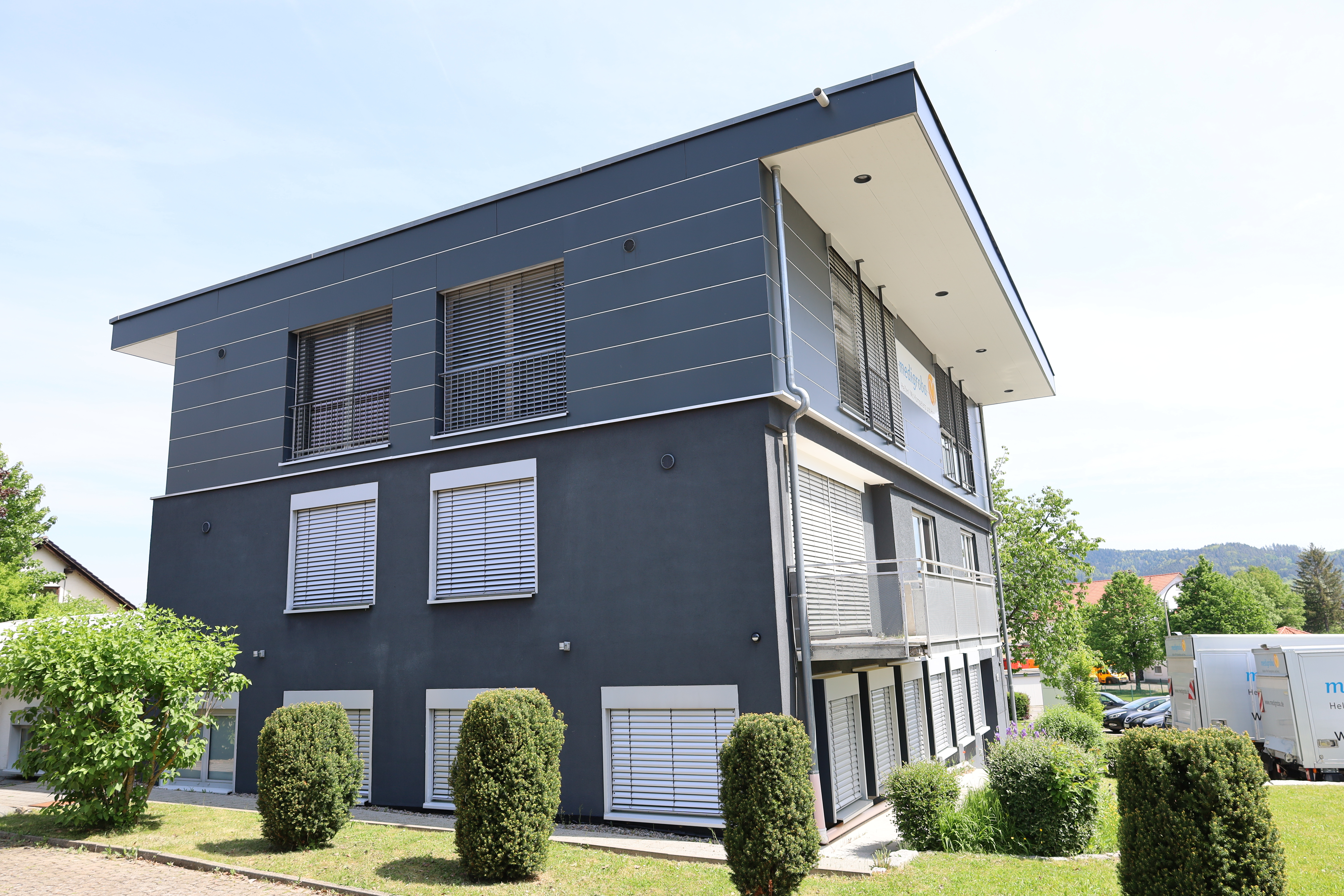 Dieses moderne Firmengebäude mit vielen Glasflächen sorgt für ein sonniges und attraktives Arbeitsklima: