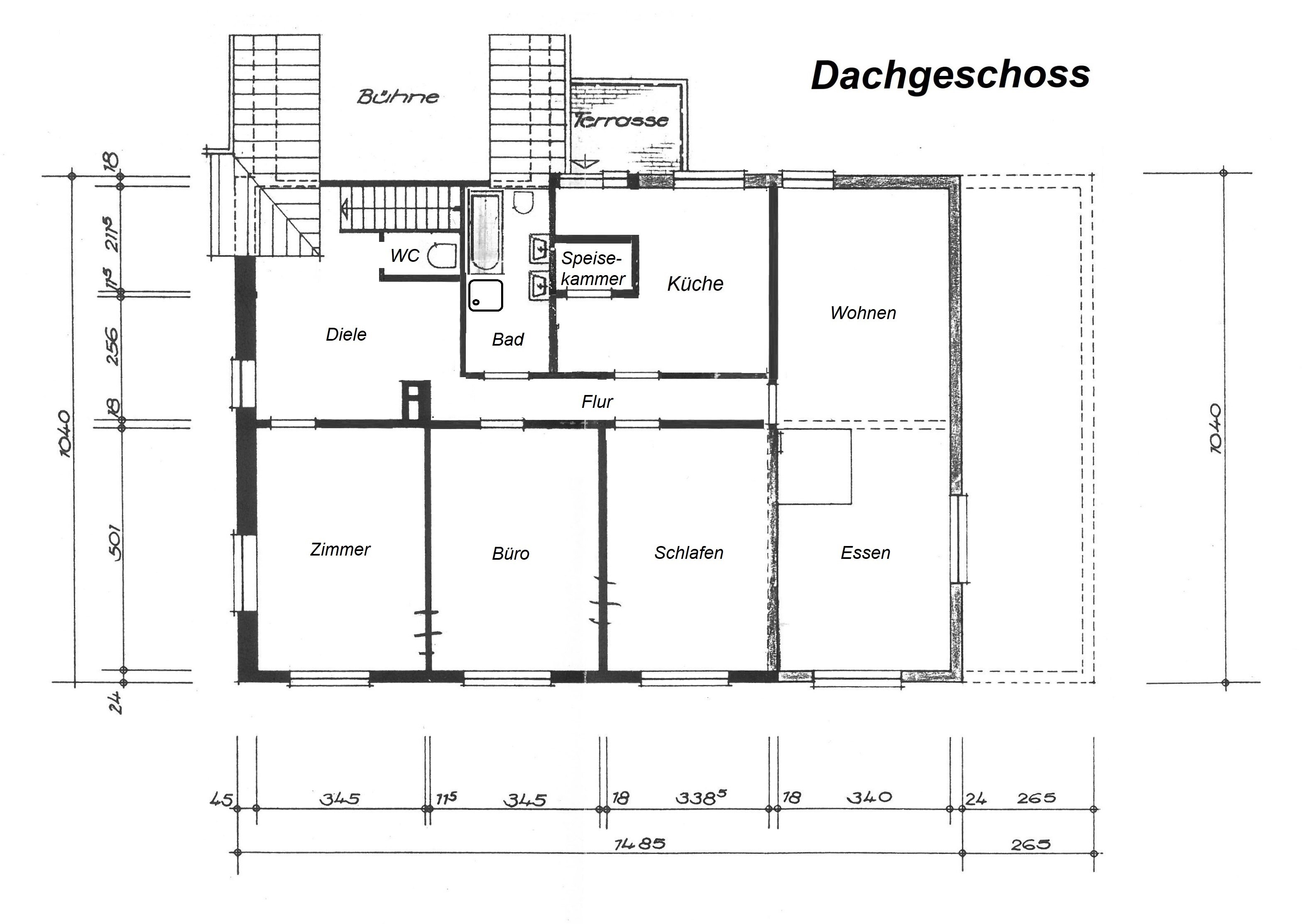 Der Anbau wird, ebenso wie das Dachgeschoss, als Abstellfläche genutzt. Hier würde sich ein weiterer Ausbau jederzeit realisieren lassen.