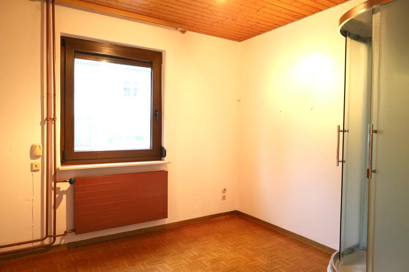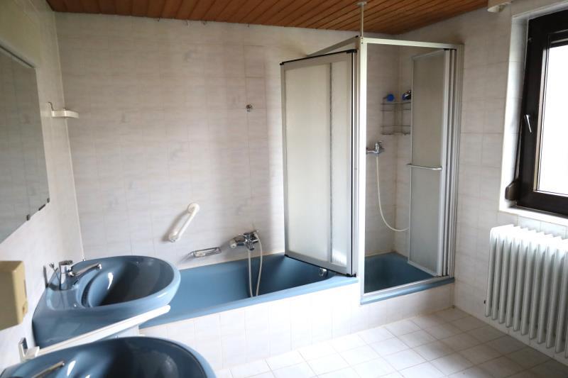 Der Keller ist sehr geräumig, hier ist das Badezimmer mit Wanne, Dusche, WC, Waschbecken und Fenster mit Blick in den Garten. Es gibt einen Vorratsraum mit Naturboden und einen großen Hobbyraum mit Waschküche und der Öl-Zentralheizung. Von diesem Raum führt die Türe auf die große Terrasse mit Markise und in den Garten.