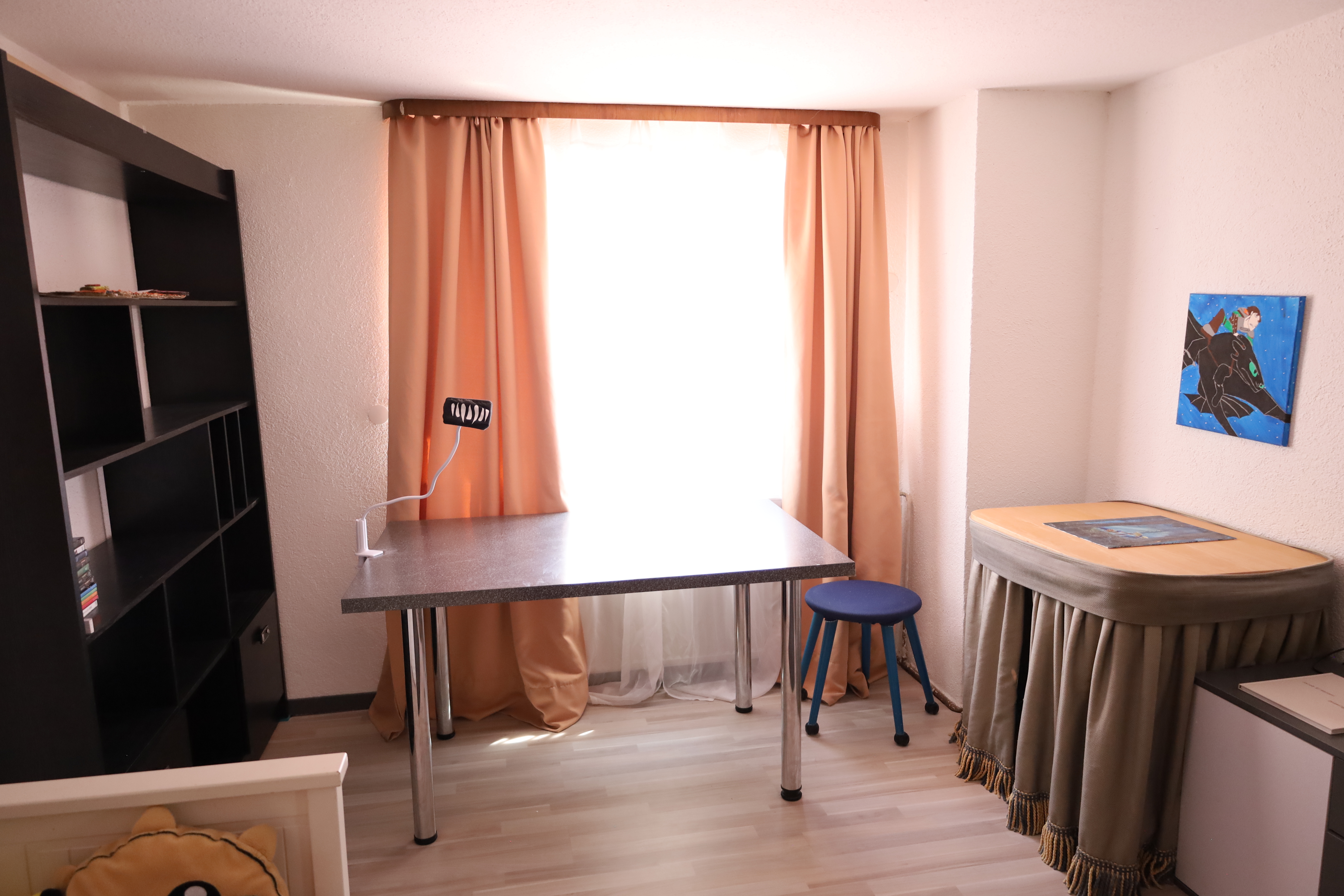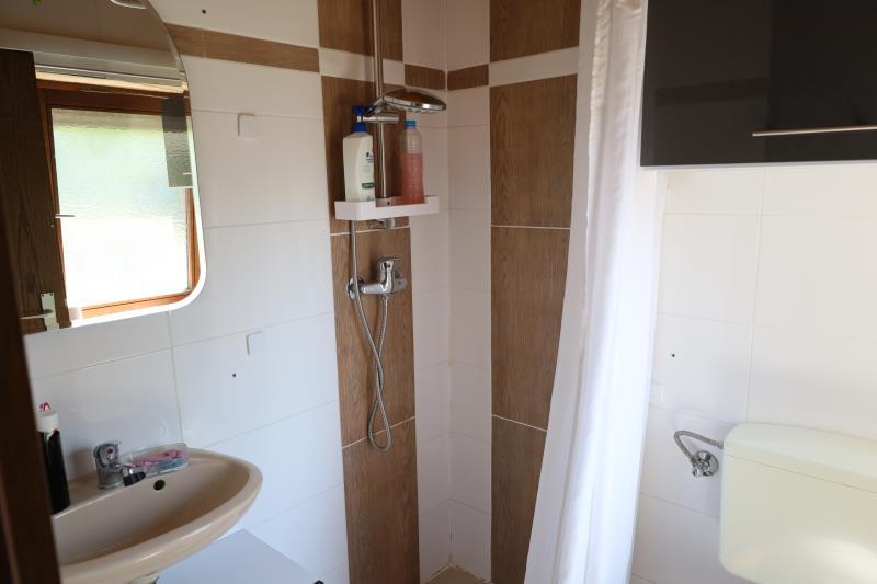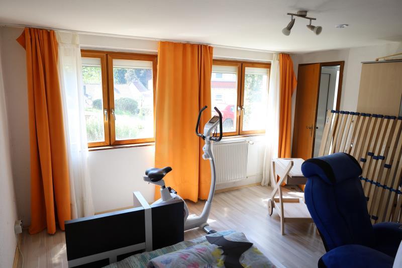 Im Erdgeschoss befindet sich ein Zimmer und daneben ein großes Schlafzimmer mit direktem Zugang in das Duschbad mit WC.