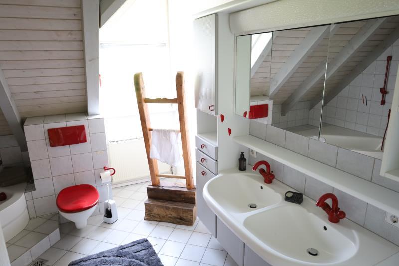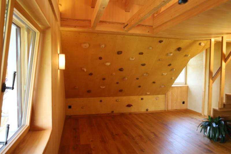 Über das Treppenhaus erreichen Sie das Dachgeschoss, in welchem sich zwei kleinere Räume, ein großes Tageslichtbad mit Dusche, Badewanne, WC und Doppelwaschbecken befinden. Von den beiden neuen Räumen geht es auf den Balkon. Diese Zimmer wurden gestaltet mit wohnlichen Panelen, Holzboden und mit der besonderen Beleuchtung wurde ein Ambiente zur Erholung erschaffen. Vom Kinderzimmer aus führt eine Treppe in den Dachspitz mit Kuschelecke und Arbeitsbereich.