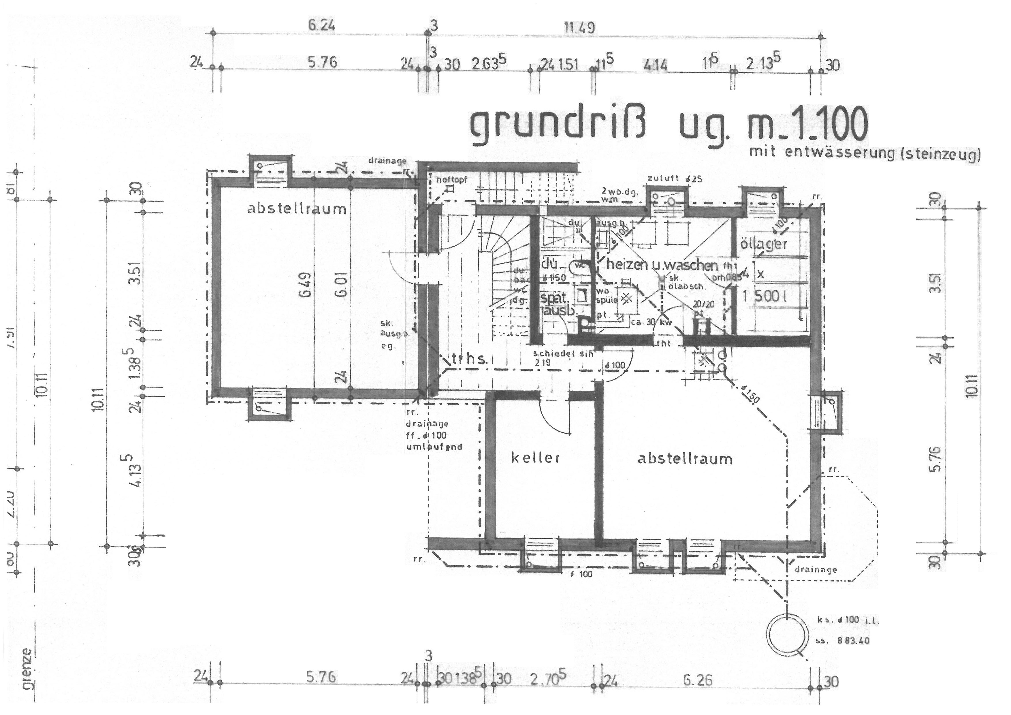 Im Untergeschoss gibt es neben zwei geräumigen Abstellräumen, einen Keller, ein Duschbad mit Waschbecken und WC, einen Heizraum sowie ein Öllager.