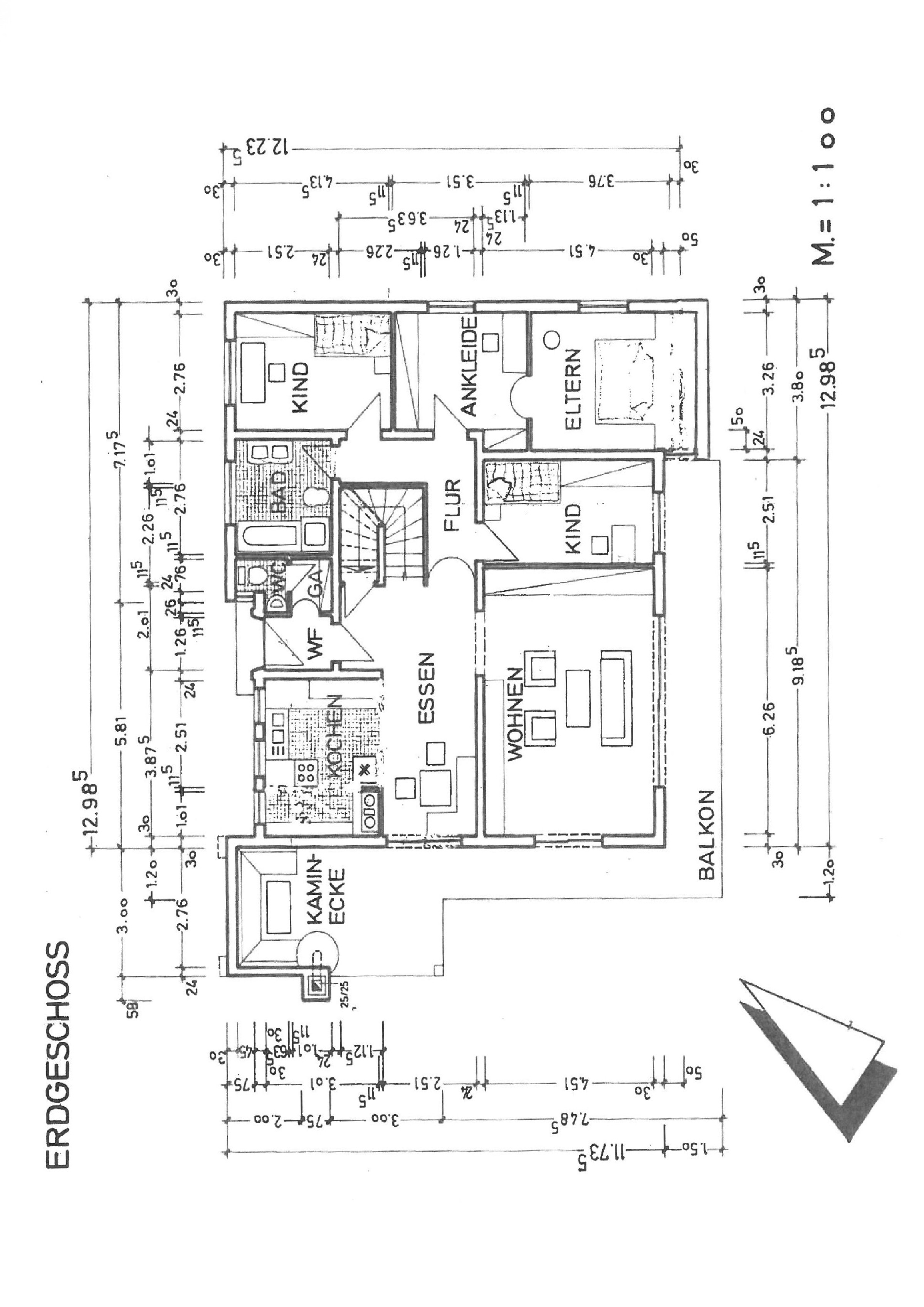 Im Erdgeschoss sind der offene Essbereich mit toller Einbauküche, der Wohnbereich mit Zugang zum Balkon, zwei Büro,- Kinder oder Gästezimmer, das Elternschlafzimmer mit Ankleide davor und ein großes Familienbad mit Wanne, Dusche, WC, Tageslichtfenster und ein Gäste-WC.