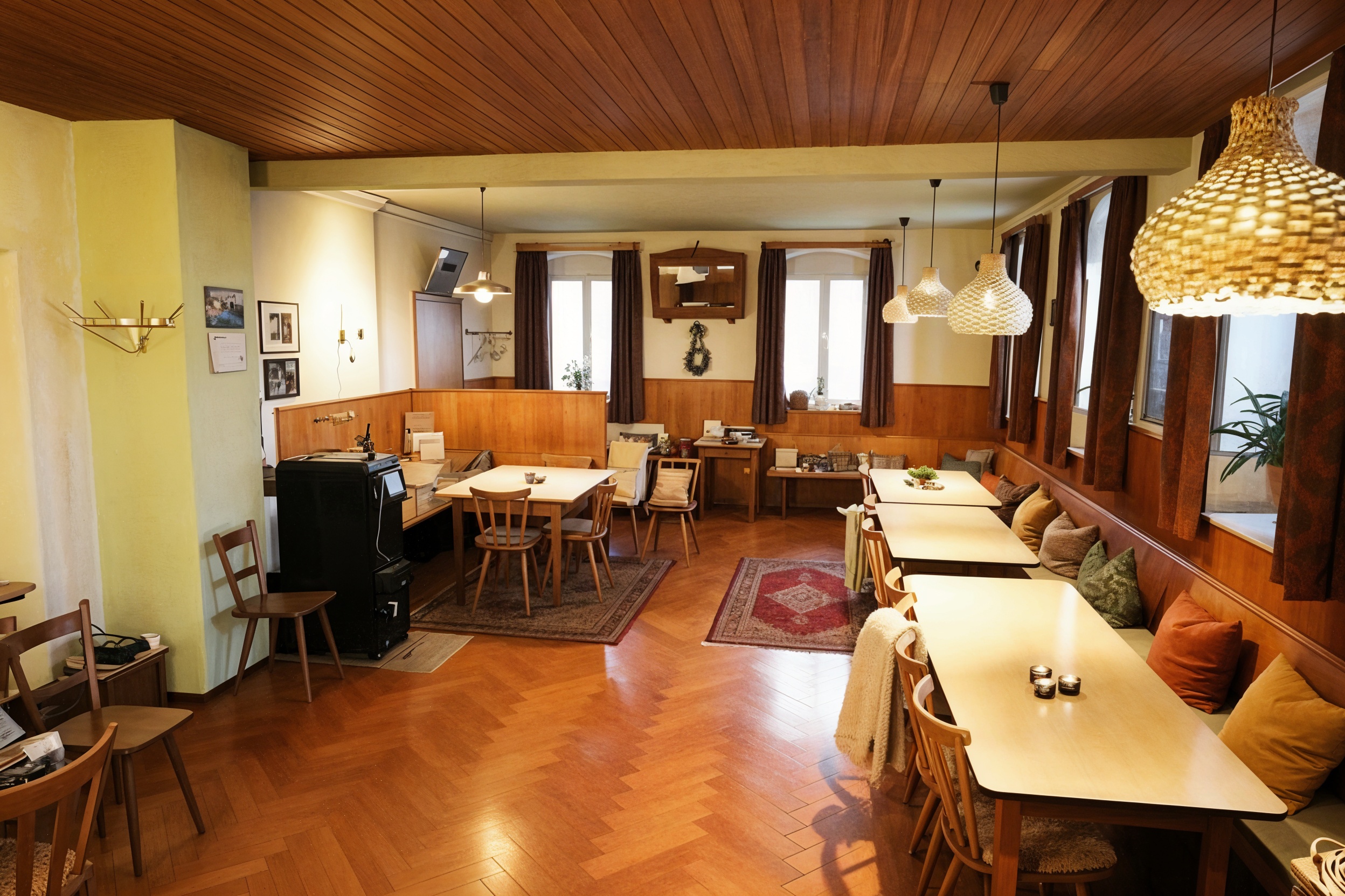 Die Gaststätte ehemals „Gasthof Engel“ befindet sich im Erdgeschoss. In der Gaststube mit Bewirtungstheke begeistern die breiten Außenwände, große Fensterflächen und der stilvolle Fischgrät Parkettboden. In der Mitte der Stube, am sogenannten „Stammtisch“ ist der historische Holz-Ofen für gemütliche Einkehrabende. Hinter der Gaststube ist die Küche, mit ihrem originalen Holz-Herd. Es gibt ein Nebenzimmer, die Vorbereitungsküche sowie die WC-Anlage: ein Damen WC und ein Herren WC.