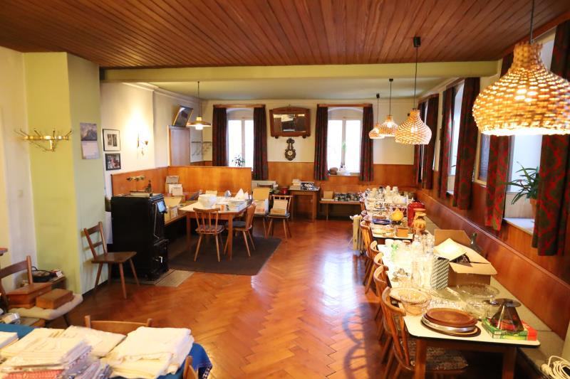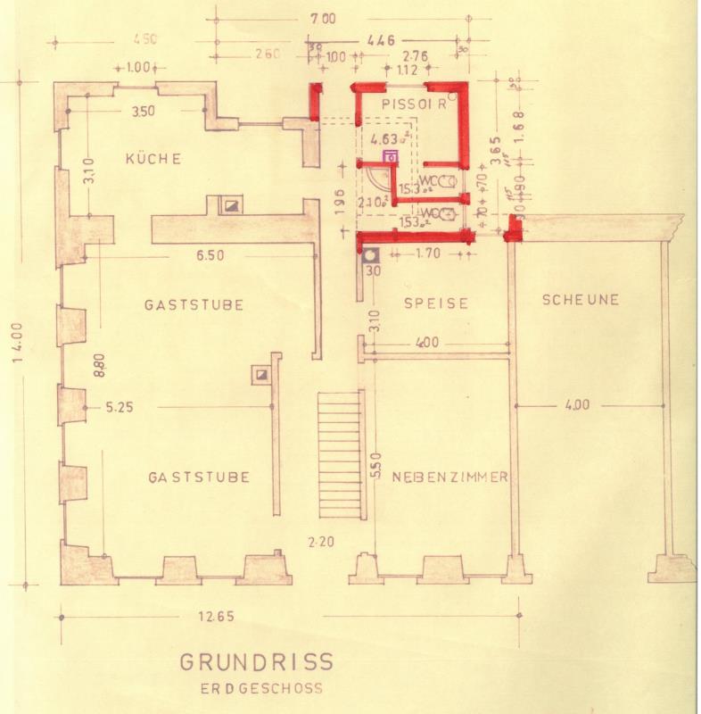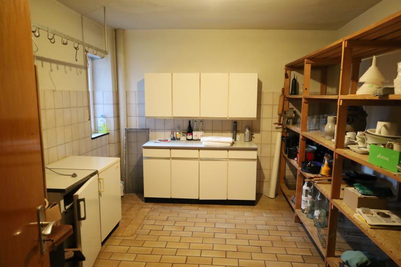 Hinter der Gaststube ist die Küche, mit ihrem originalen Holz-Herd. Es gibt ein Nebenzimmer, die Vorbereitungsküche sowie die WC-Anlage: ein Damen WC und ein Herren WC.