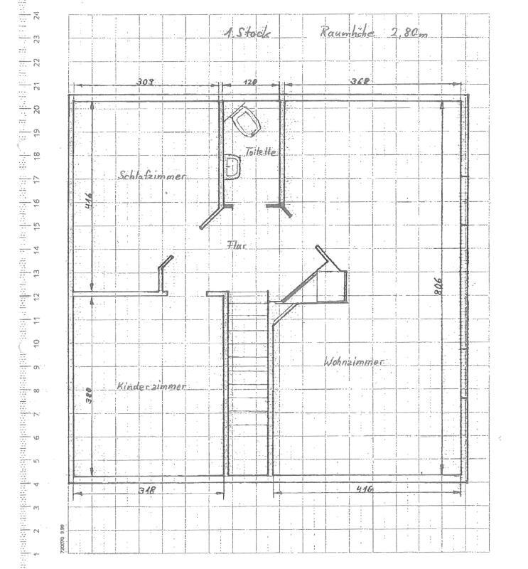 Im Dachgeschoss haben wir vergleichsweise zum Erdgeschoss bei einer Höhe von 2,30 m eine erstaunliche Höhe von 2,80 m!