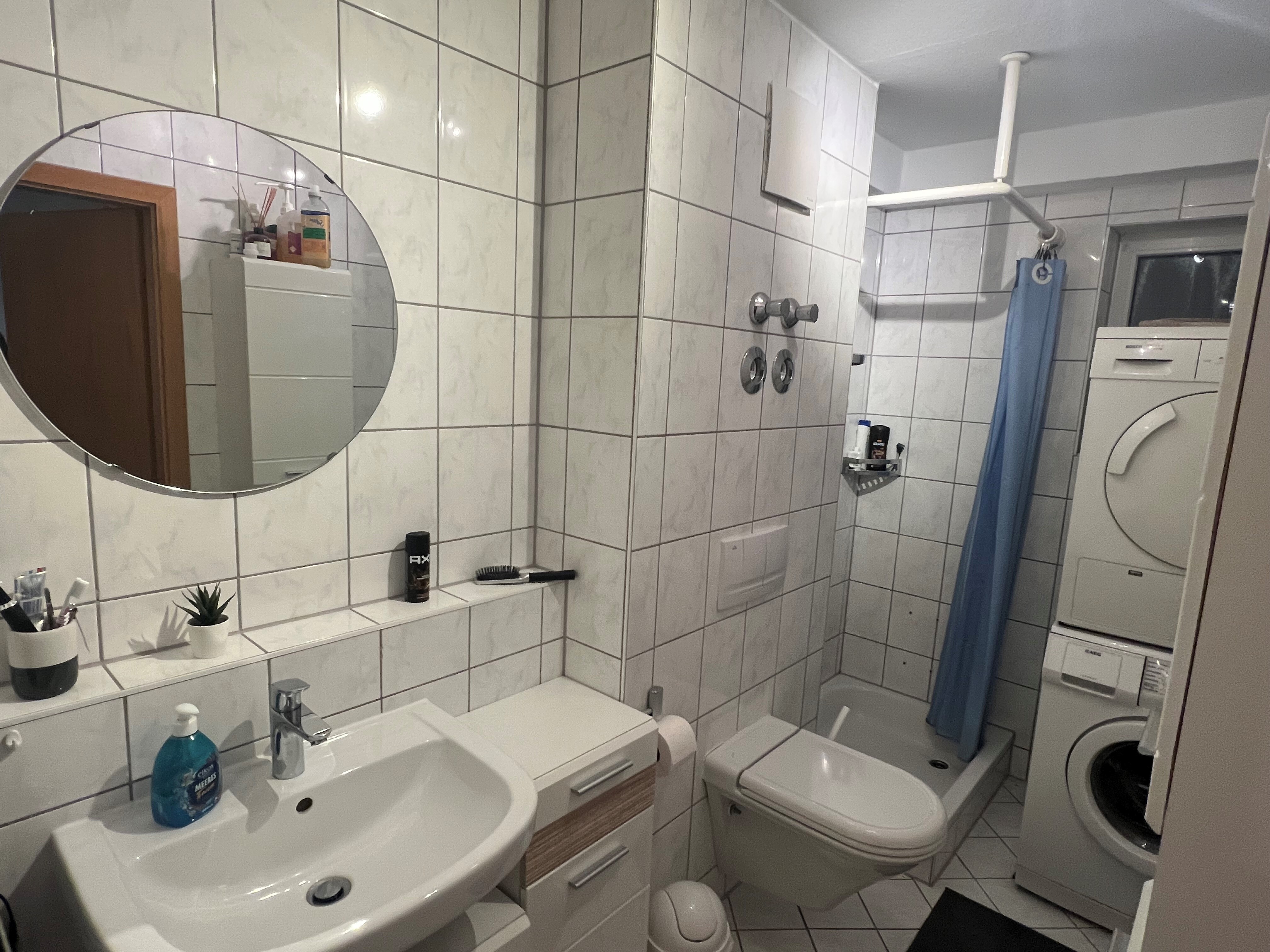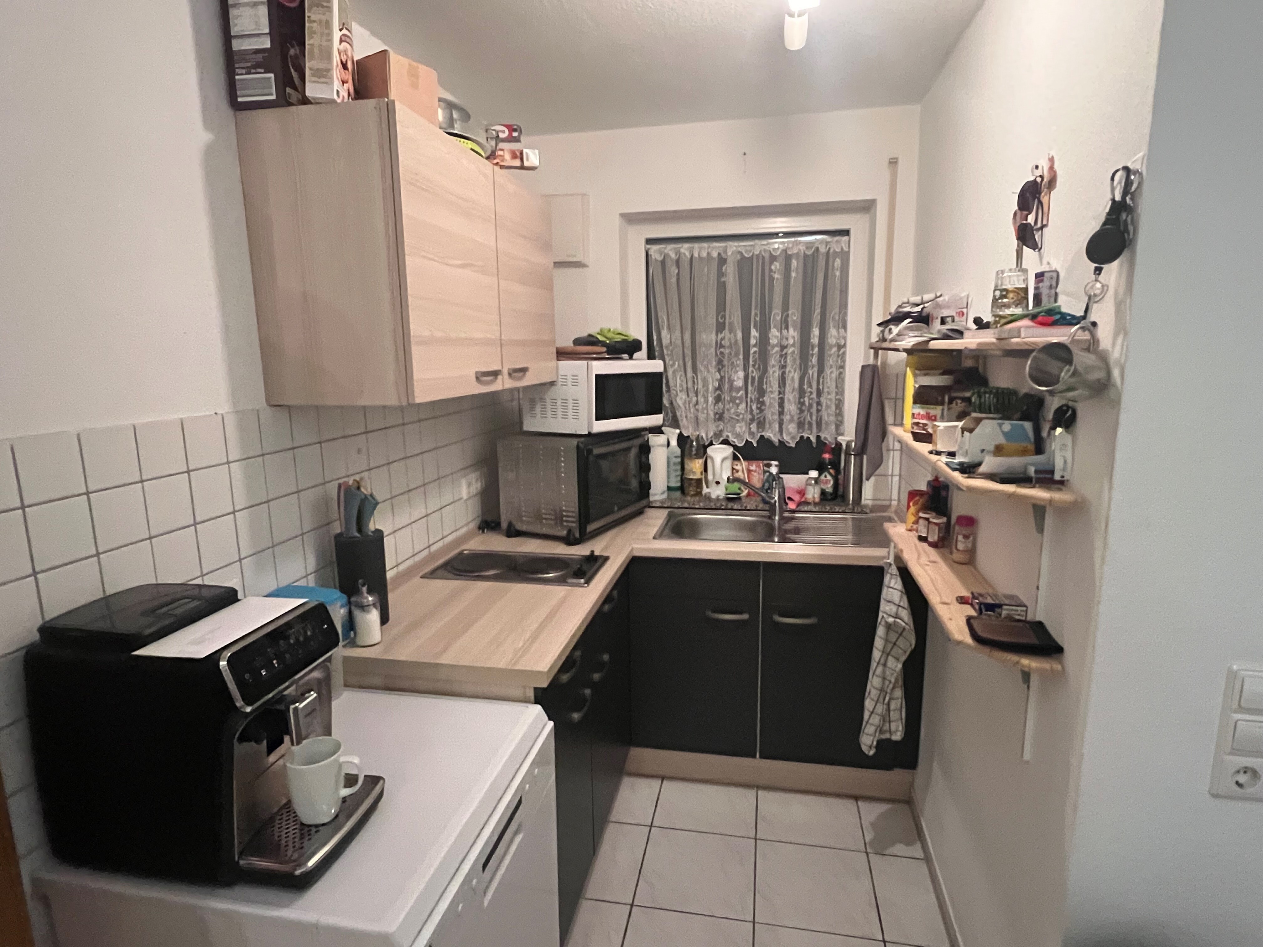 Auf der rechten Seite vom Flur aus gelangt man in die kleine, aber Top ausgestattete moderne Einbauküche, direkt daneben ist das Badezimmer mit Dusche und Waschmaschinenanschluss.