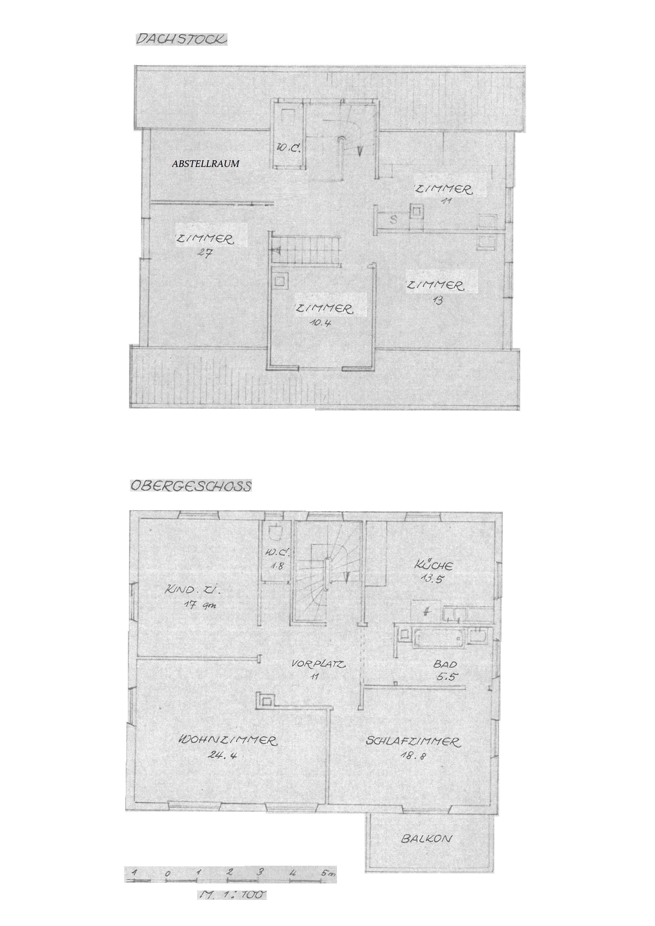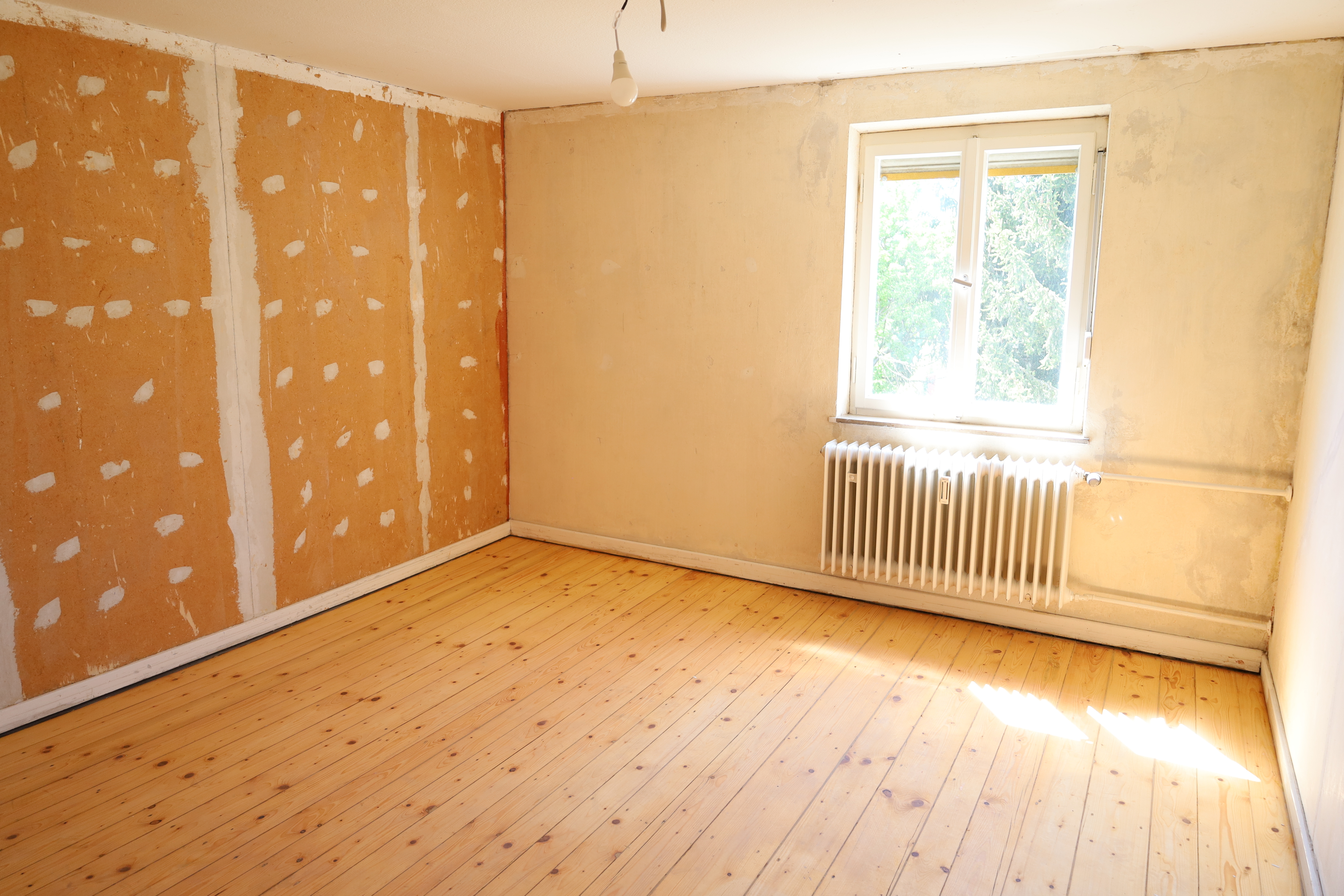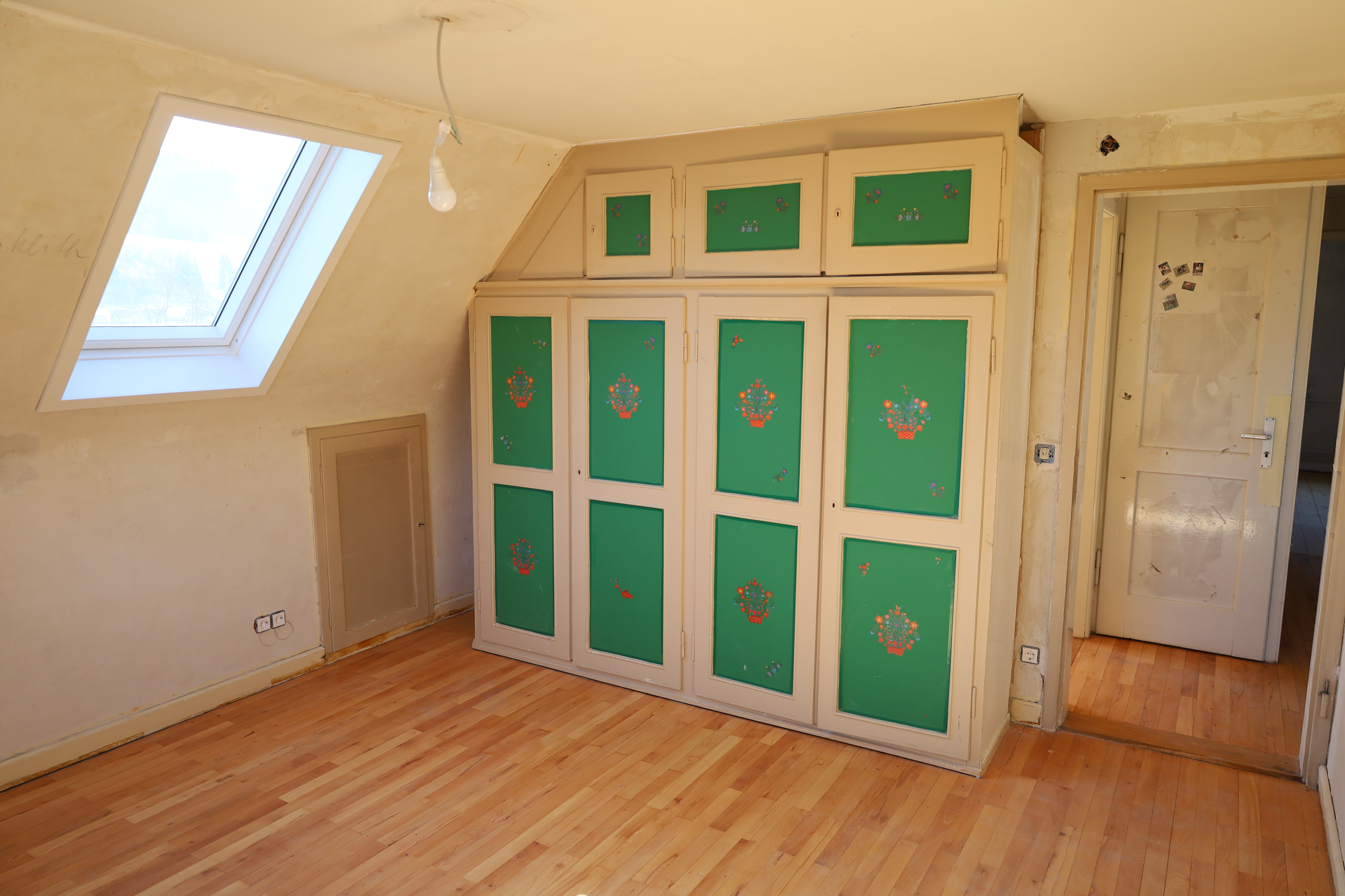 Das Dach ist komplett ausgebaut: 4 Zimmer, Küche (oder Bad) und separates WC. Eine Holztreppe führt ins 2. Dachgeschoss, das aktuell als Abstellfläche genutzt wird.
