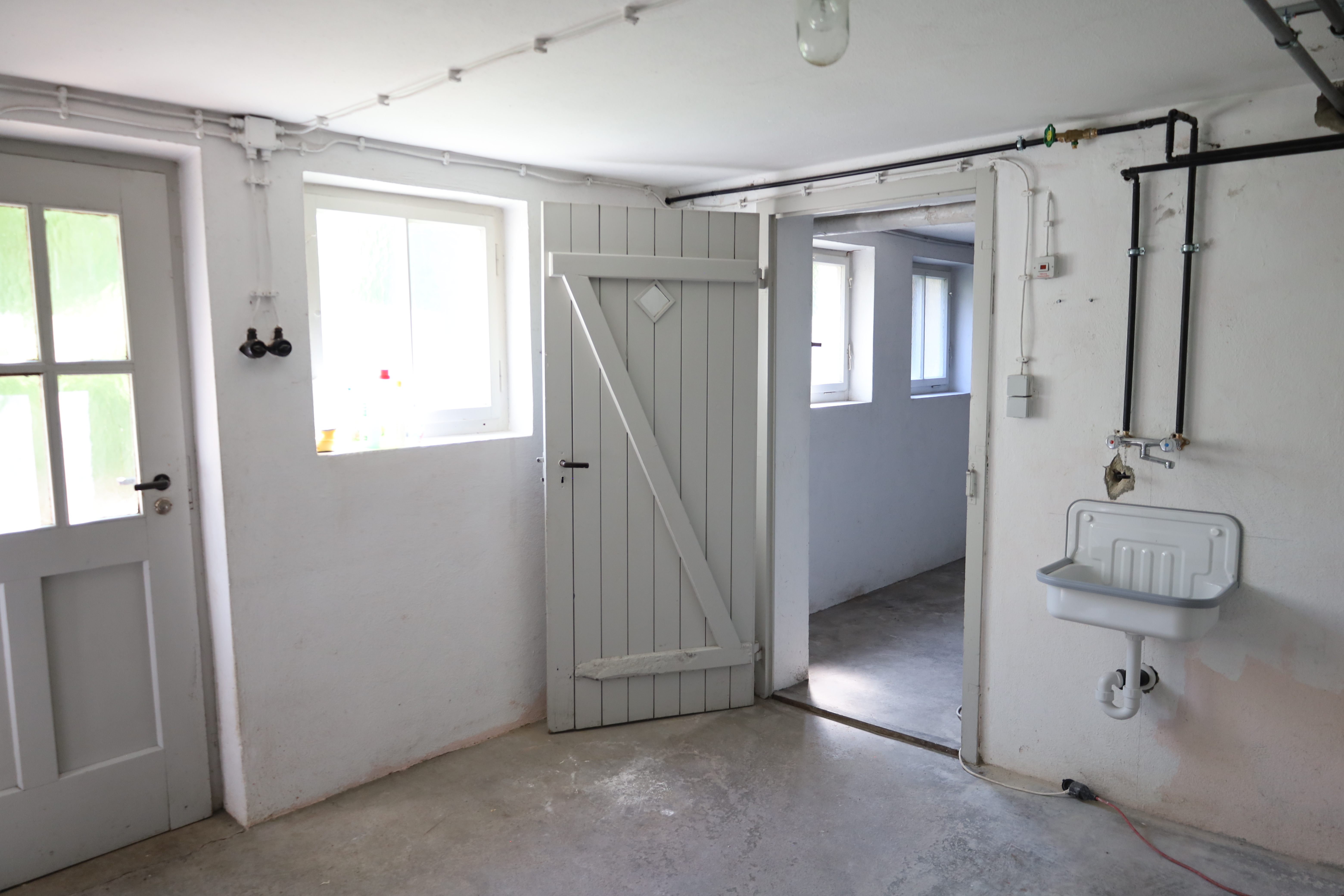 Das vollständig unterkellerte Haus bietet neben einem zusätzlichen Zimmer eine helle Waschküche mit direktem Zugang zum Garten, einen Heizraum und weitere Abstellräume.