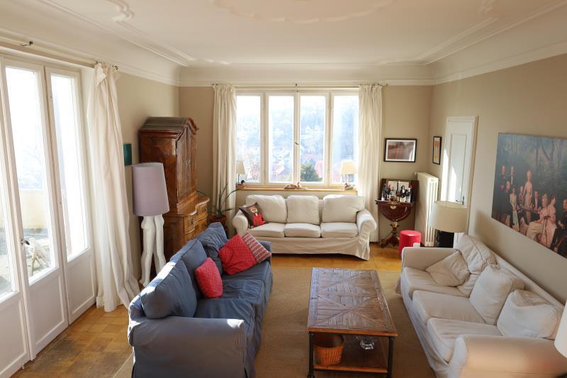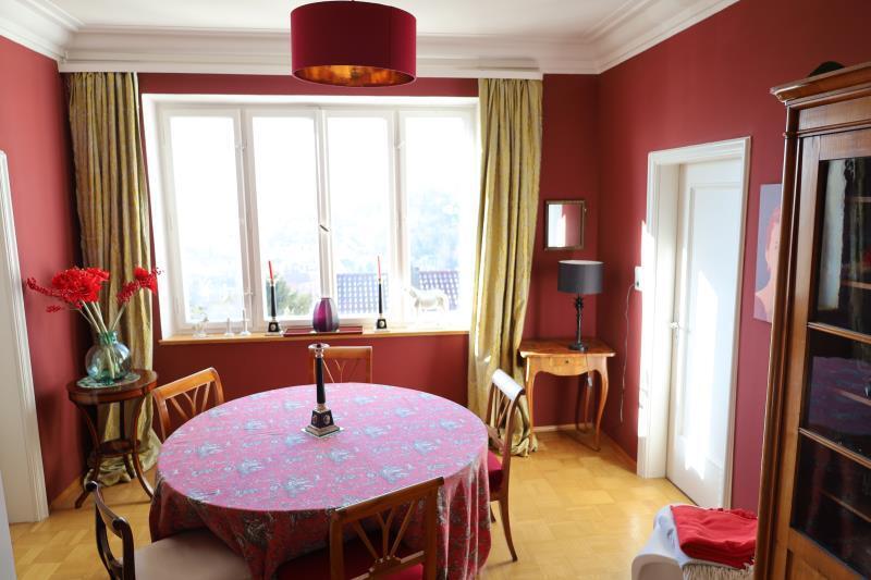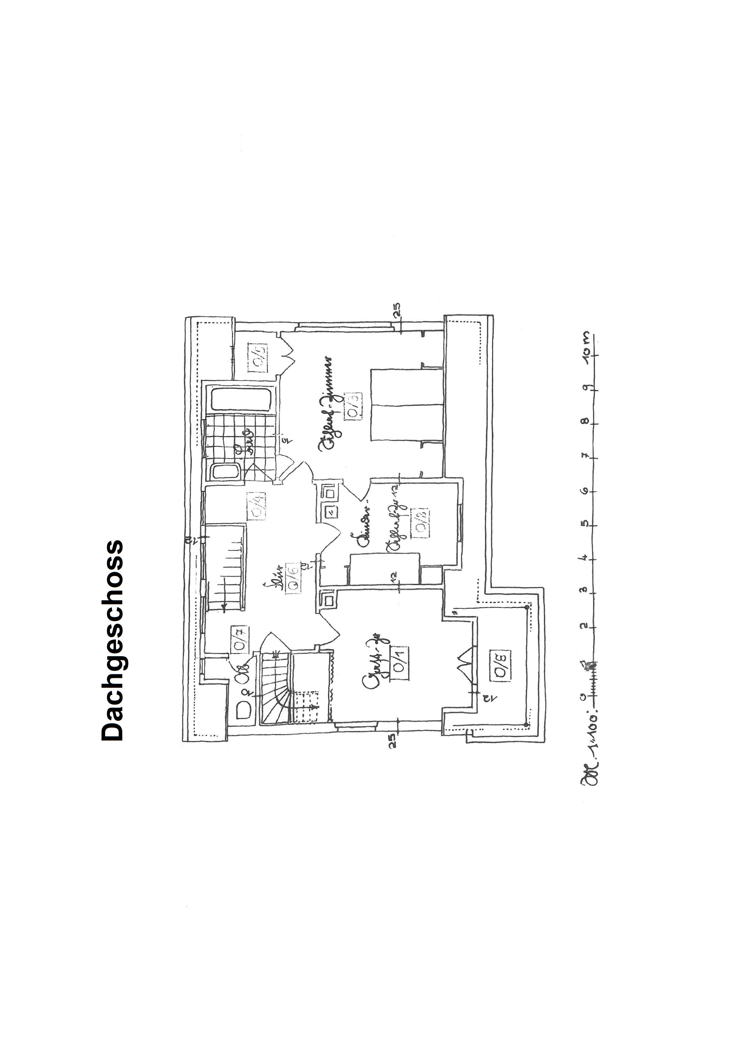 Die schwungvolle und formschöne Holztreppe führt in das Dachgeschoss mit drei Zimmern und einem Bad mit Wanne, zwei Waschbecken und einem separaten WC. Die Zimmer sind alle sehr großzügig und zum Teil noch mit originalen Einbauschränken und Alkoven ausgestattet.