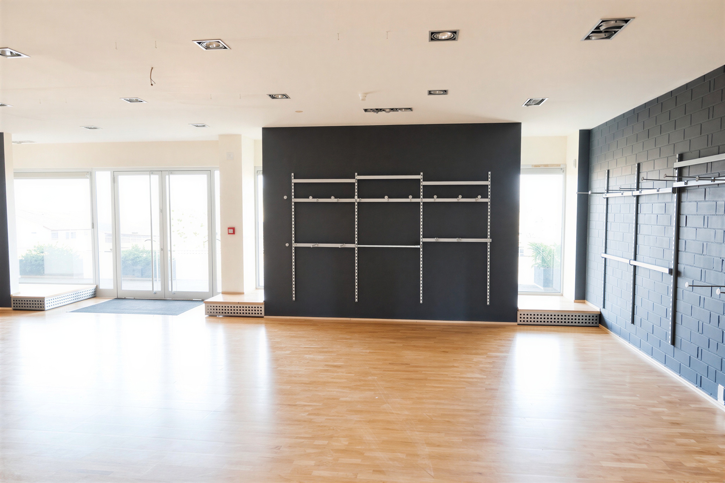 Das Geschäft ist ebenerdig über eine große Eingangstüre erreichbar. Links und rechts davon gibt es Schaufensterflächen.