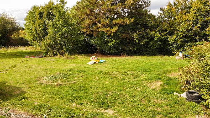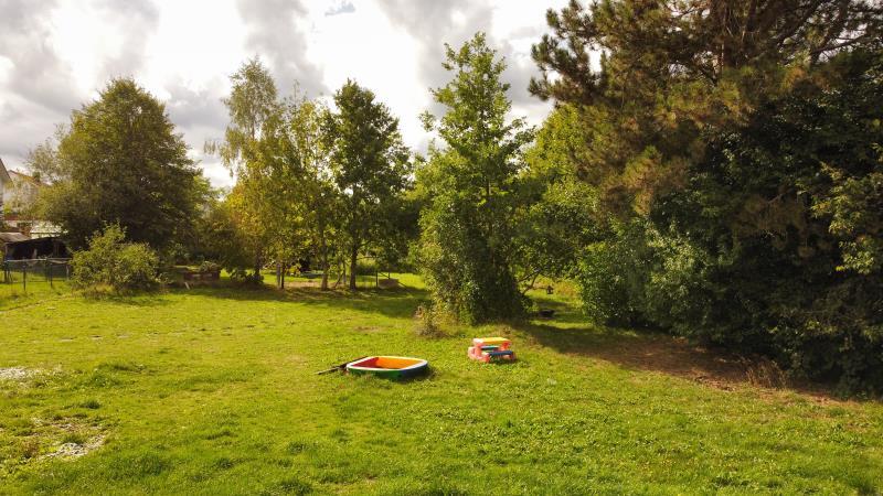 Zum ebenen Baugrundstück führt eine kleine Straße. Vorbei am Haus mit Überfahrtsrecht und schon steht man auf dem eigenen Grundstück mitten im bestehenden Wohngebiet.