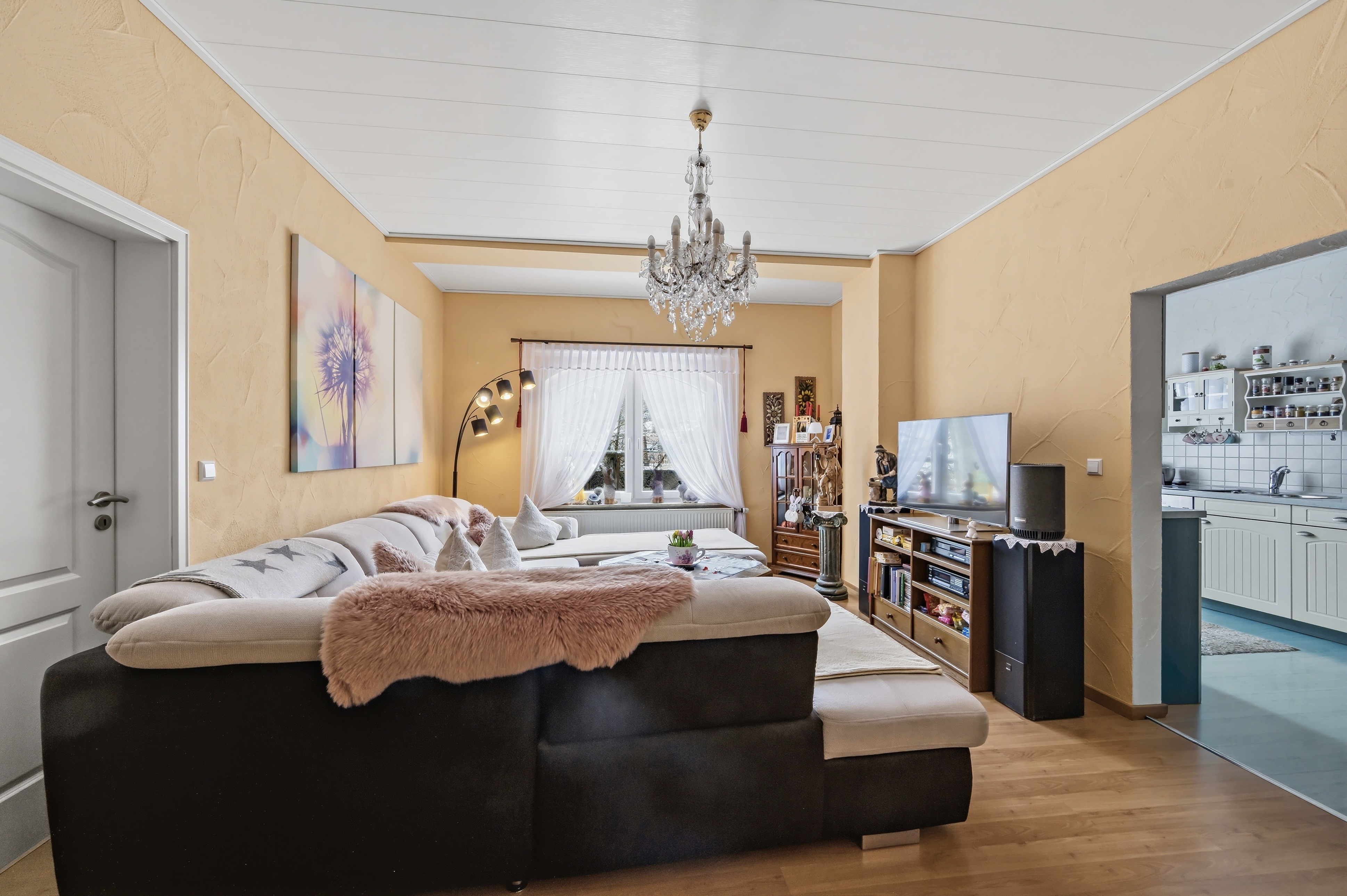 Im Erdgeschoss ist die erste Wohnung mit ca. 108 m² Wfl. Diese ist aufgeteilt in einen Wohnbereich mit Holz-Ofen, eine Wohnküche, ein Schlafzimmer, ein Lesezimmer (welches früher ein Gewölbekeller war), ein Hauswirtschaftsraum, ein Badezimmer ausgestattet mit Dusche, Badewanne, Toilette und Waschtisch sowie einem Gäste-WC.