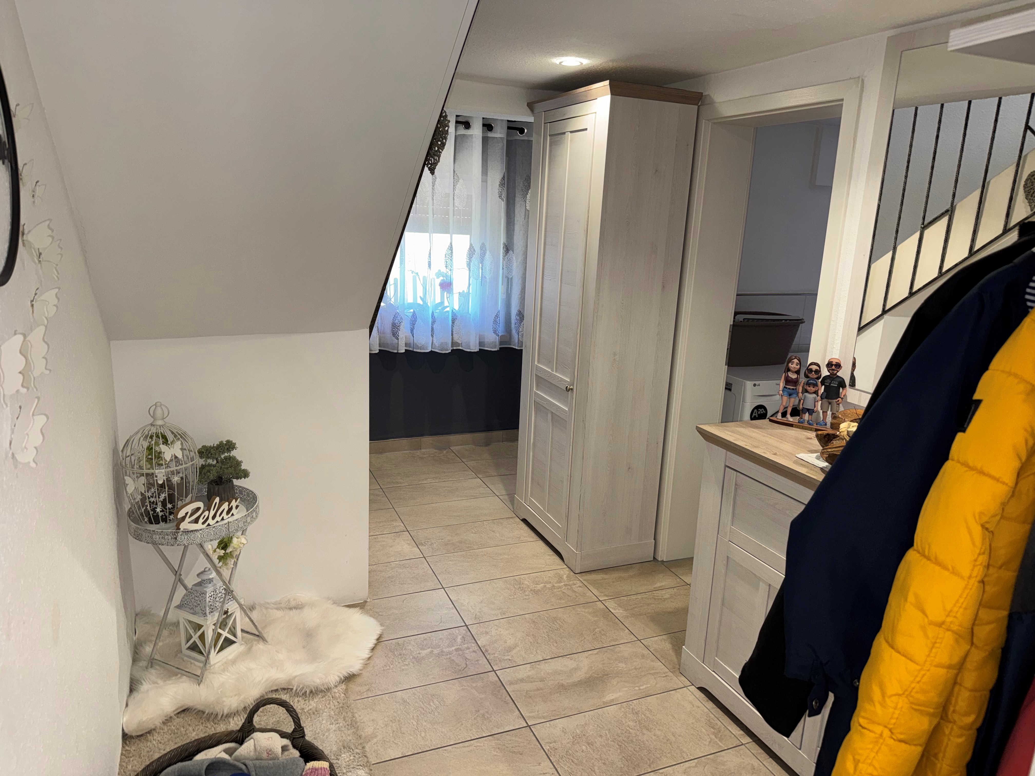 Im Dachgeschoss befindet sich ein großzügiges Schlafzimmer und ein Gästezimmer, das mit einem Einbauschrank ausgestattet ist.