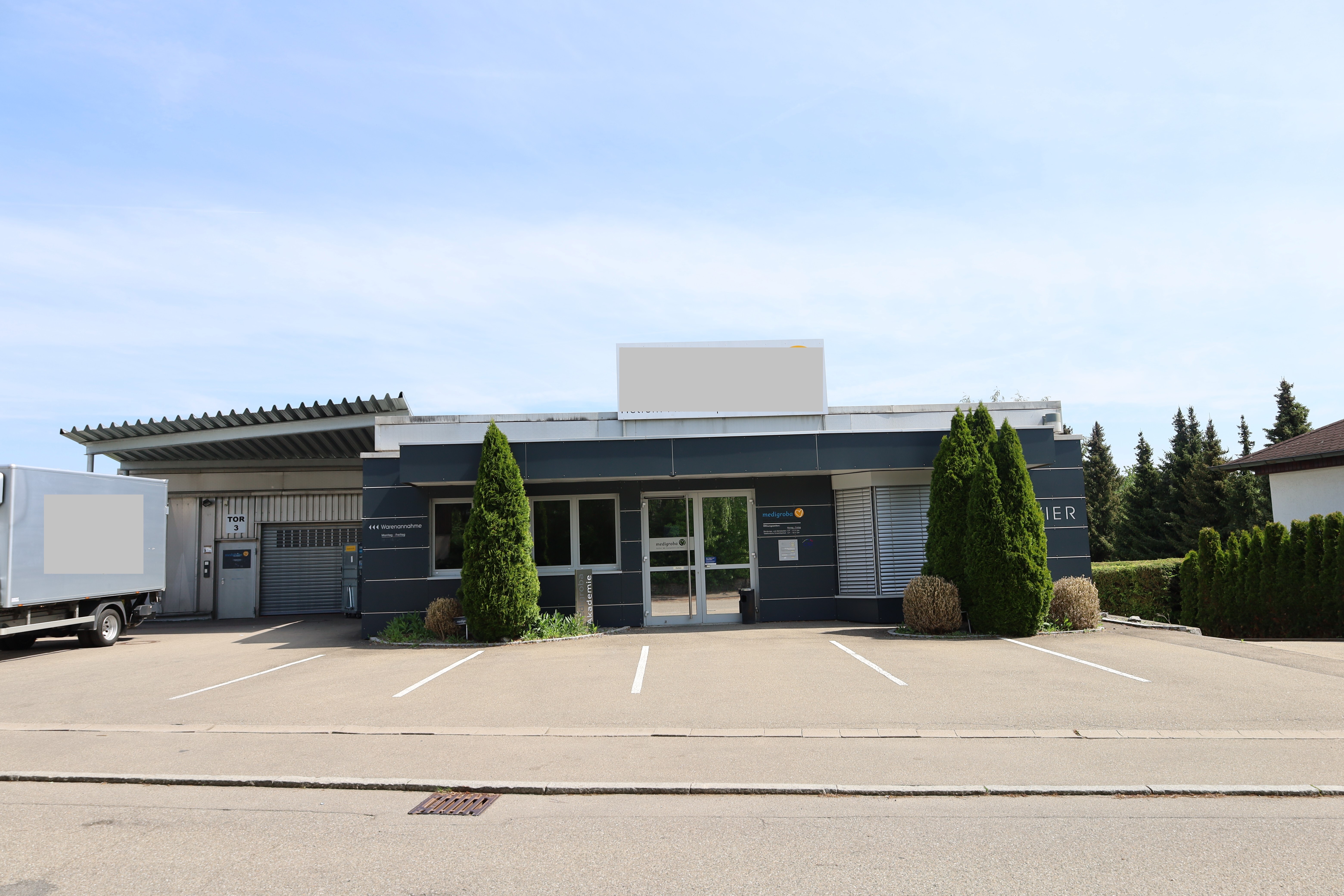 Das Lager ist über ein Rolltor befahrbar mit Versandbereich. Hier führt eine Treppe direkt ins Untergeschoss mit einem Schulungsraum, Heiztechnik und weiterer Lagerfläche. Über das Rolltor können auch PKW abgestellt werden.
