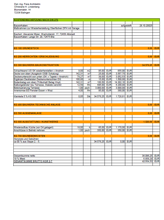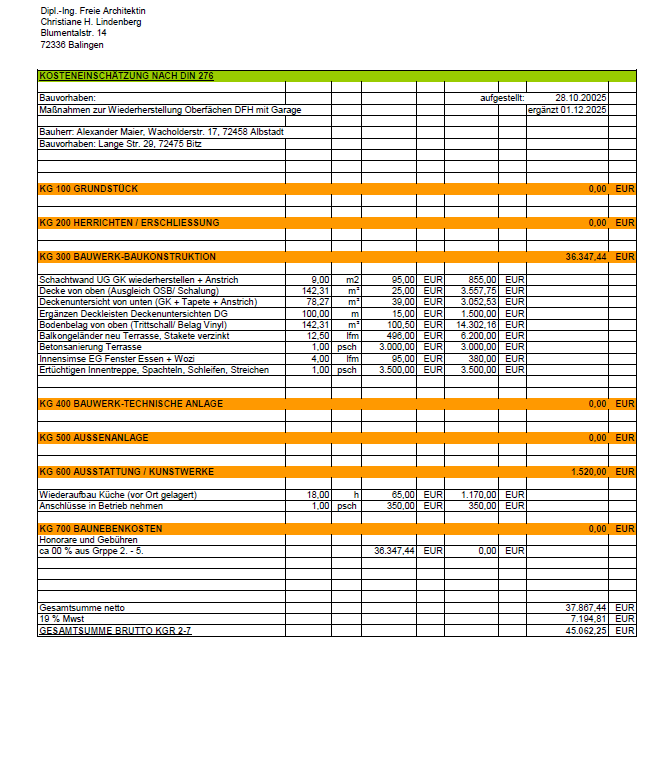 Die Immobilie hat einen großzügigen Preisnachlass erhalten, die Eigentümer haben eine Kostenaufstellung zur Ausführung der noch erforderlichen Arbeiten durch eine Architektin erstellen lassen. Diese erhalten Sie bei Anfrage des vollständigen Exposés.