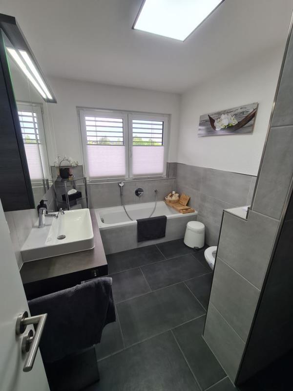 Im Untergeschoss ist eine großzügige Wohnung mit Gartenterrasse und insgesamt 95 m² Wohnfläche. Die großen Fenstertüren zum Garten faszinieren jeden Tag auf´s Neue. Der einladende Garten ist pflegeleicht, ein perfekter Bereich zum Entspannen, Chillen, Sonnenbaden und Genießen!