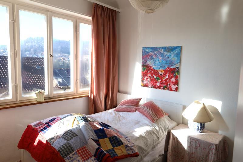 Die schwungvolle und formschöne Holztreppe führt in das Dachgeschoss mit drei Zimmern und einem Bad mit Wanne, zwei Waschbecken und einem separaten WC. Die Zimmer sind alle sehr großzügig und zum Teil noch mit originalen Einbauschränken und Alkoven ausgestattet.