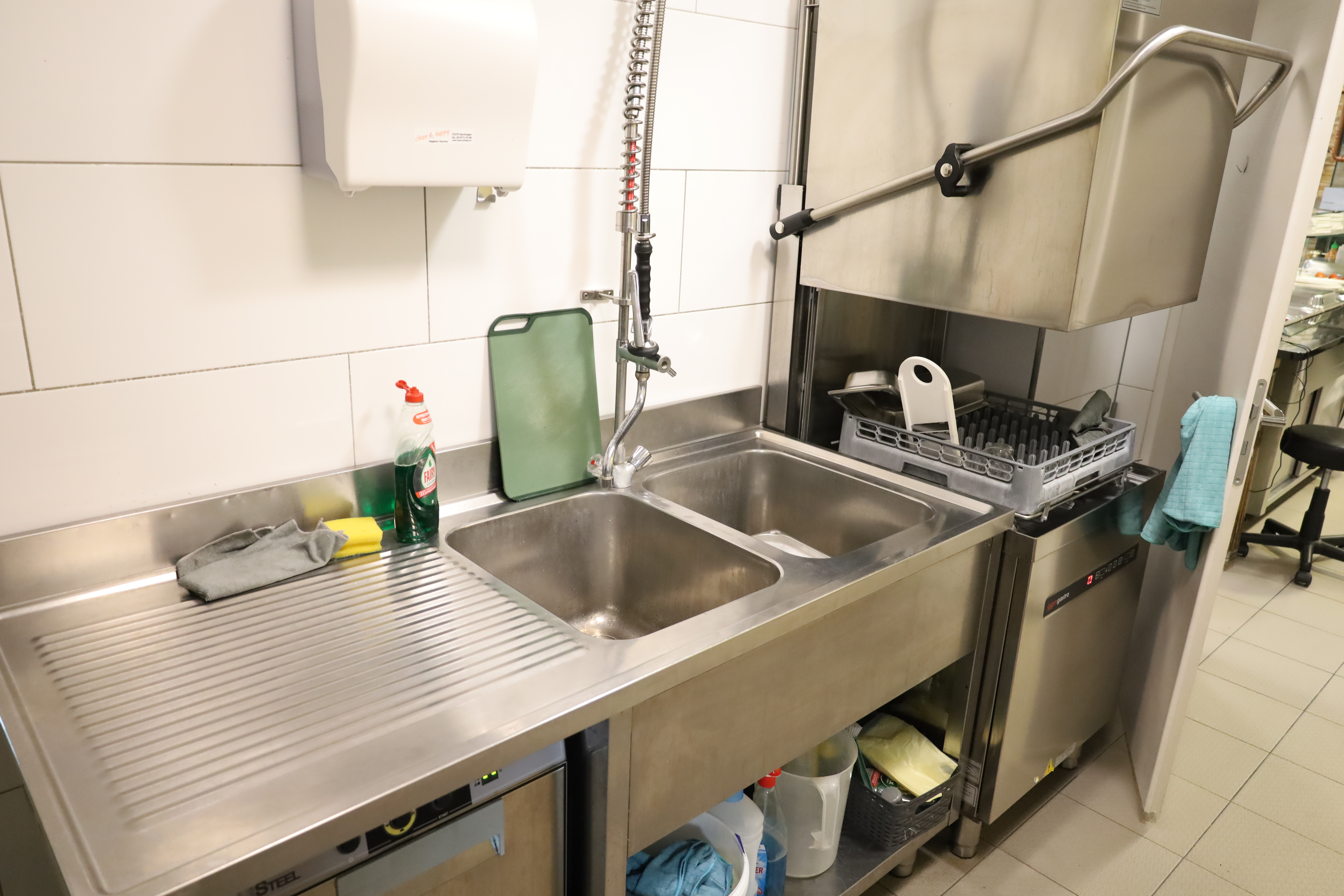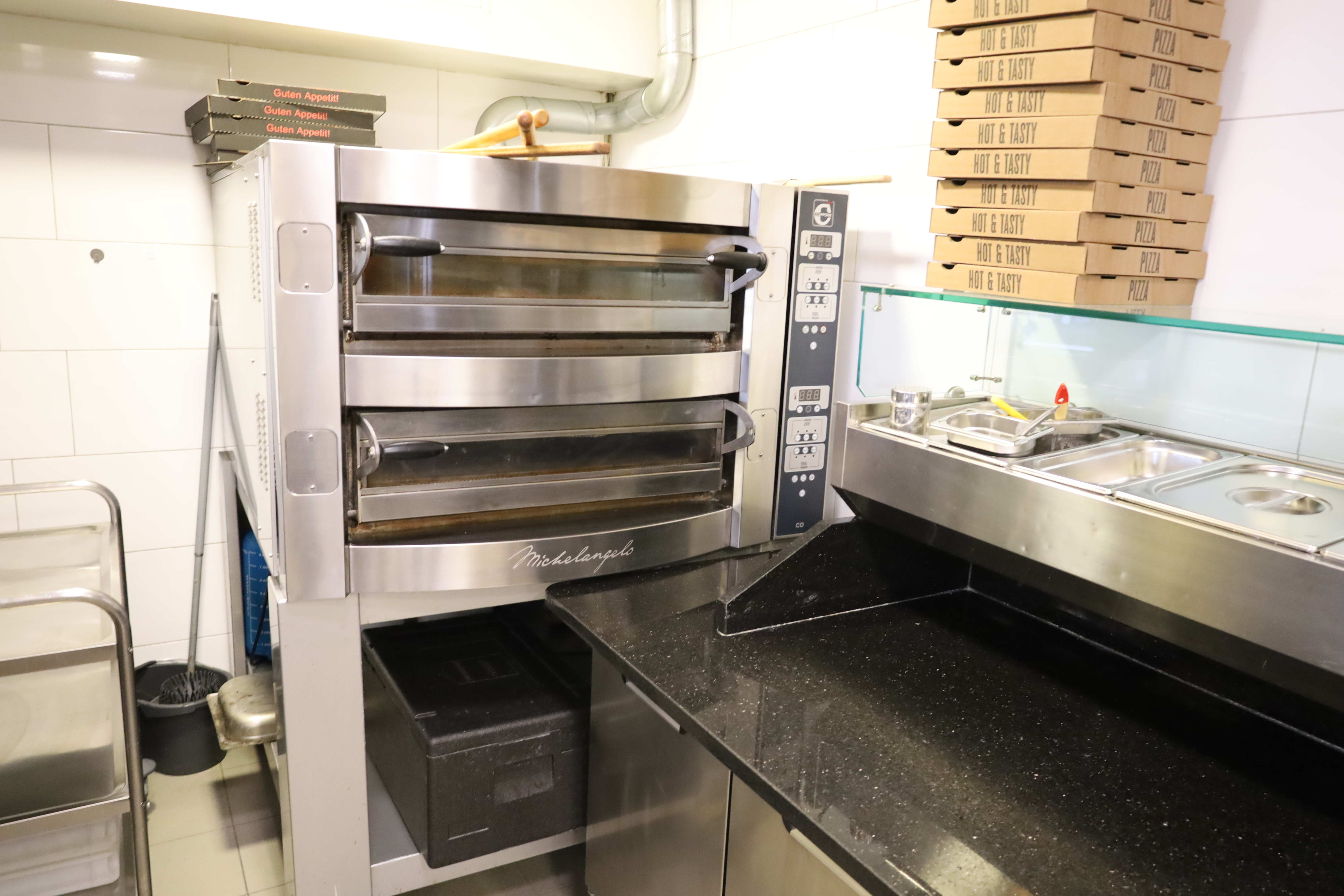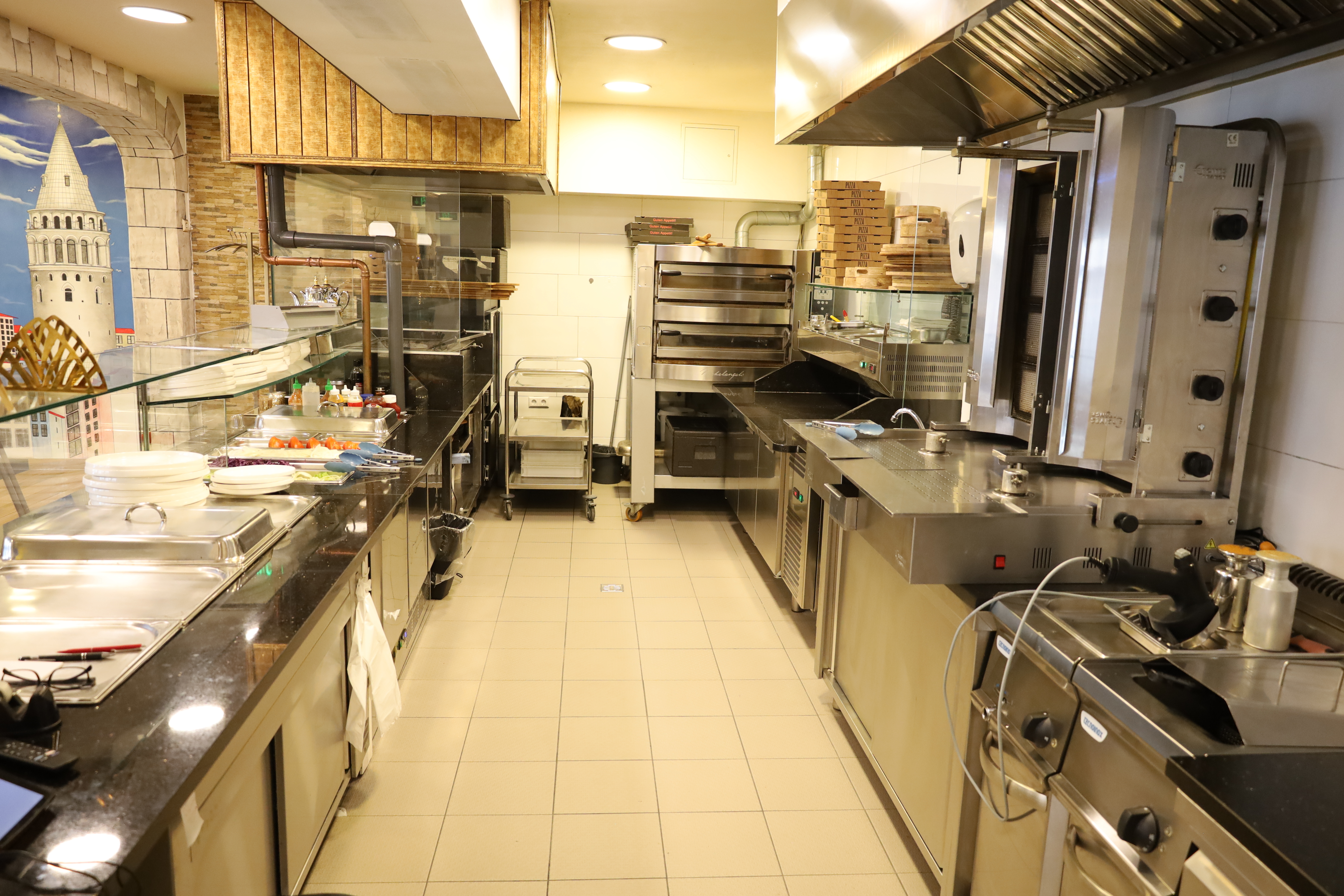 – Hochwertige und geräumige Industrieküche, ausgestattet mit Gas-Herd, Spülmaschine, Kühltheke, Pizzaofen und Holzkohle-Grill