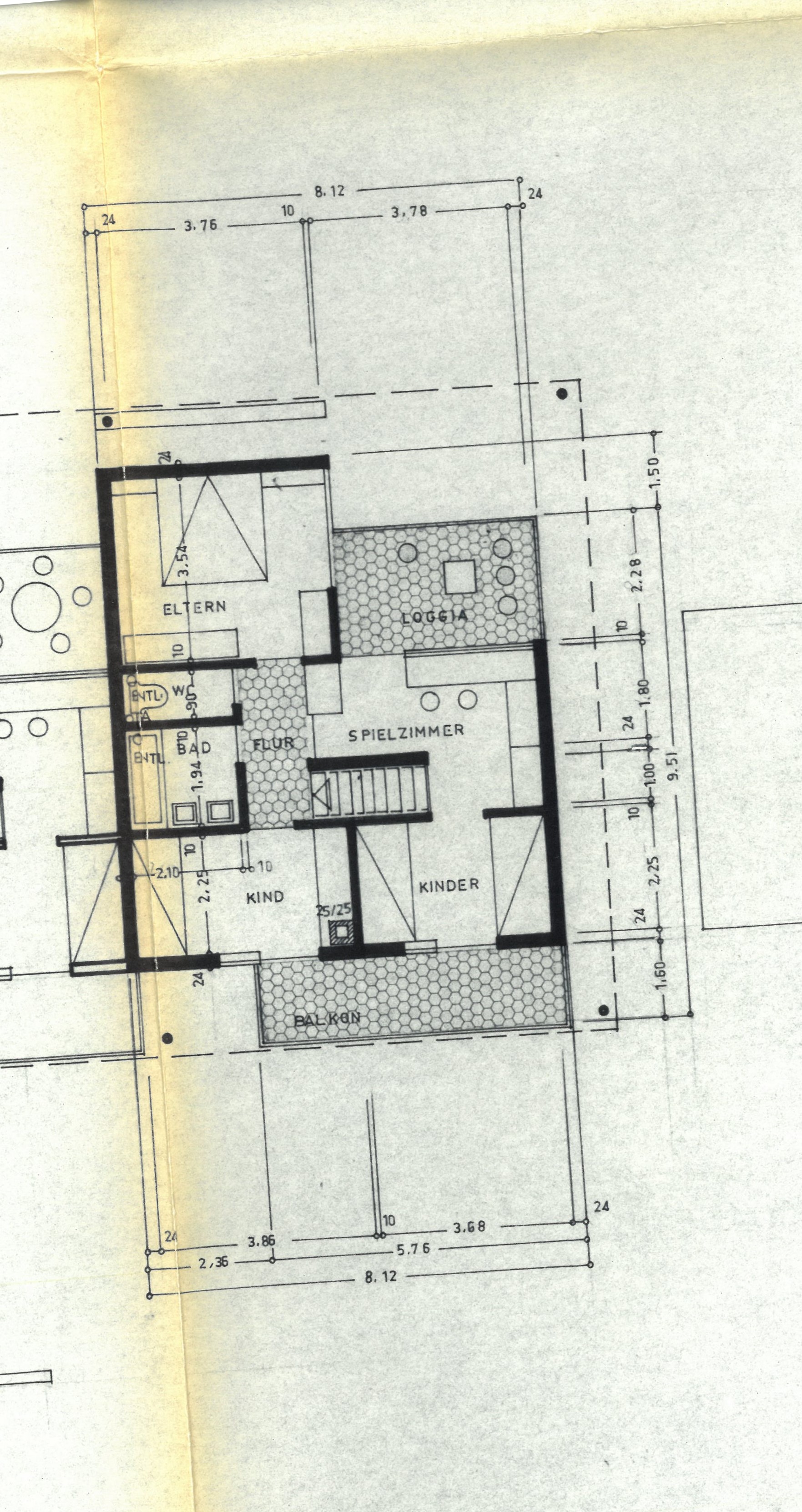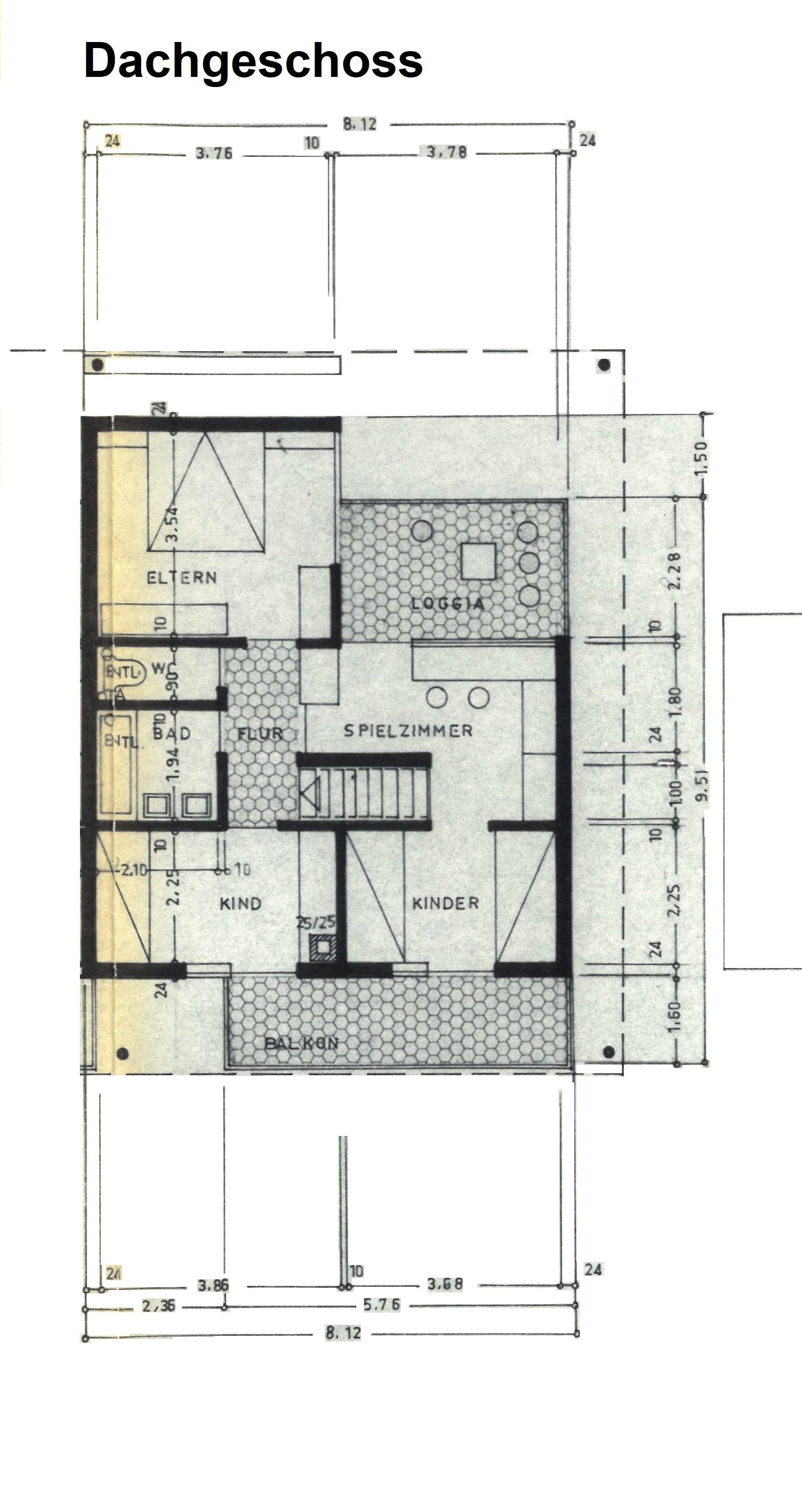 Im Dachgeschoss sind 4 Zimmer, 2 Balkone und das Familienbad.