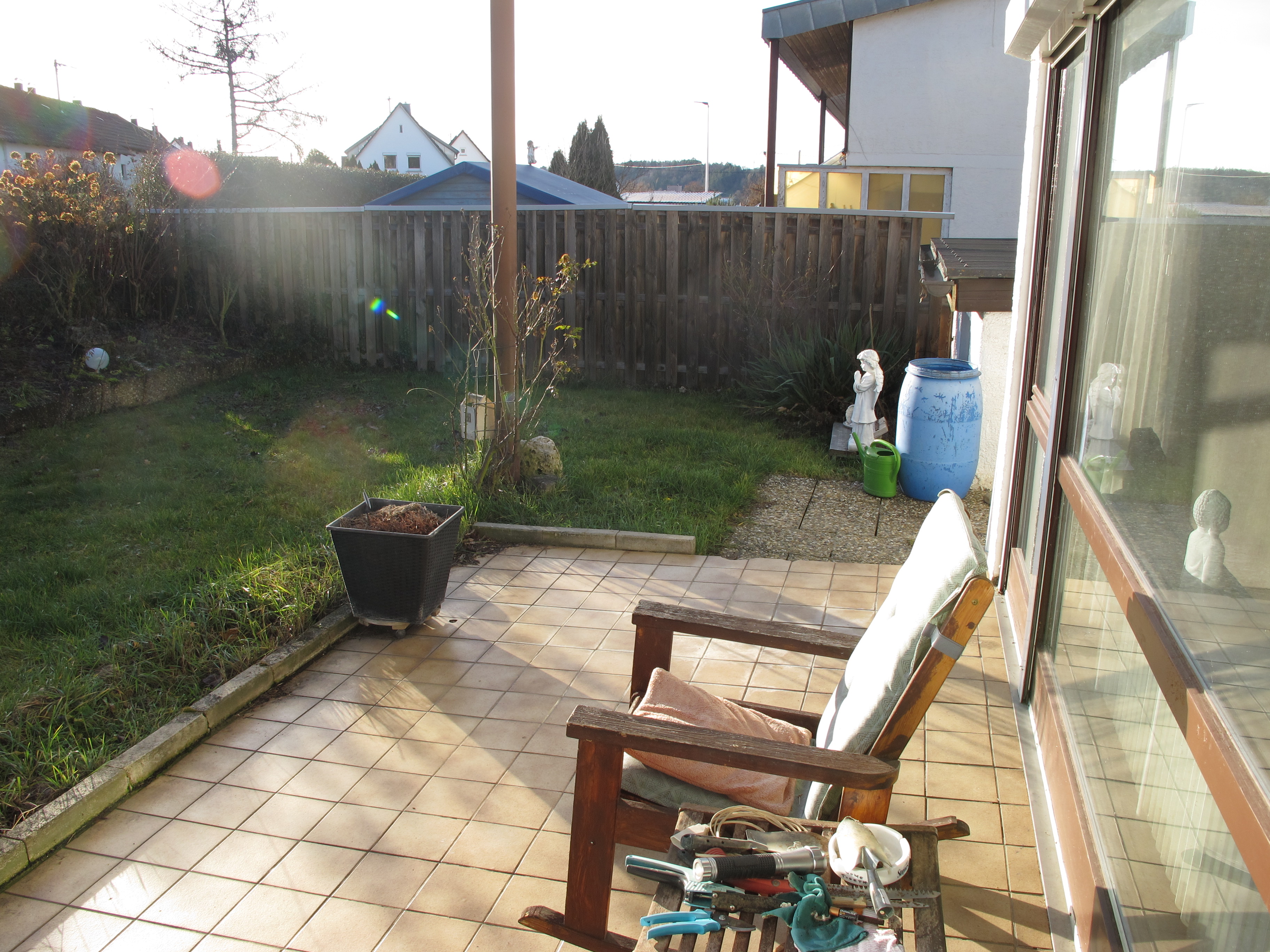 Im Eingangsbereich ist Platz für eine Garderobe, ein separates WC, ein Zimmer, die Einbauküche und ein großes Wohnzimmer mit Zugang in den Wintergarten, auf die schöne Süd-Terrasse und in den Garten.
