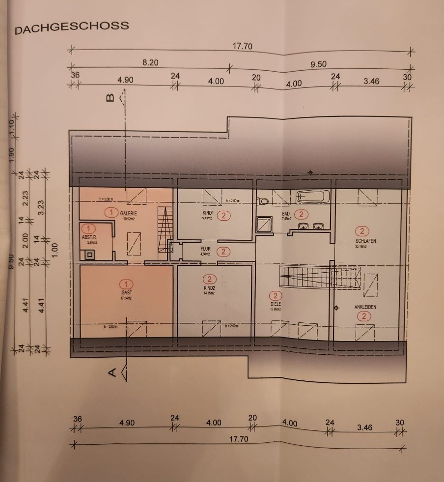 Im Dachgeschoss gibt es ein modernes Tageslichtbad mit zwei Waschbecken, WC, Wanne und Dusche, ein großes Schlafzimmer mit Ankleide sowie zwei kleinere Räume, welche als Büro oder Kinderzimmer genutzt werden können.